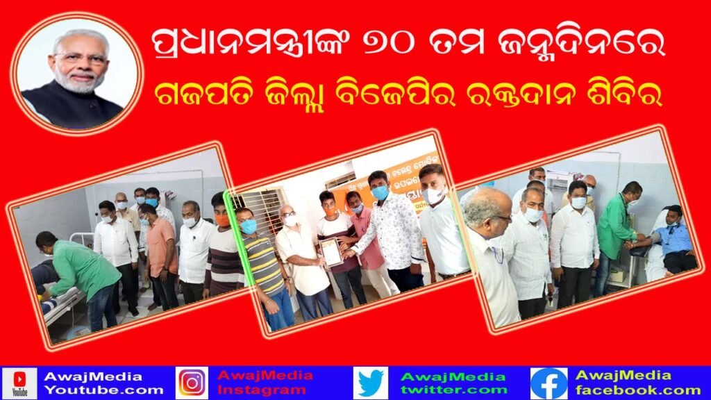 ପ୍ରଧାନମନ୍ତ୍ରୀଙ୍କ 70 ତମ ଜନ୍ମ ଦିବସରେ ଗଜପତି ଜିଲ୍ଲା ବିଜେପି ପକ୍ଷରୁ ରକ୍ତଦାନ ଶିବିର