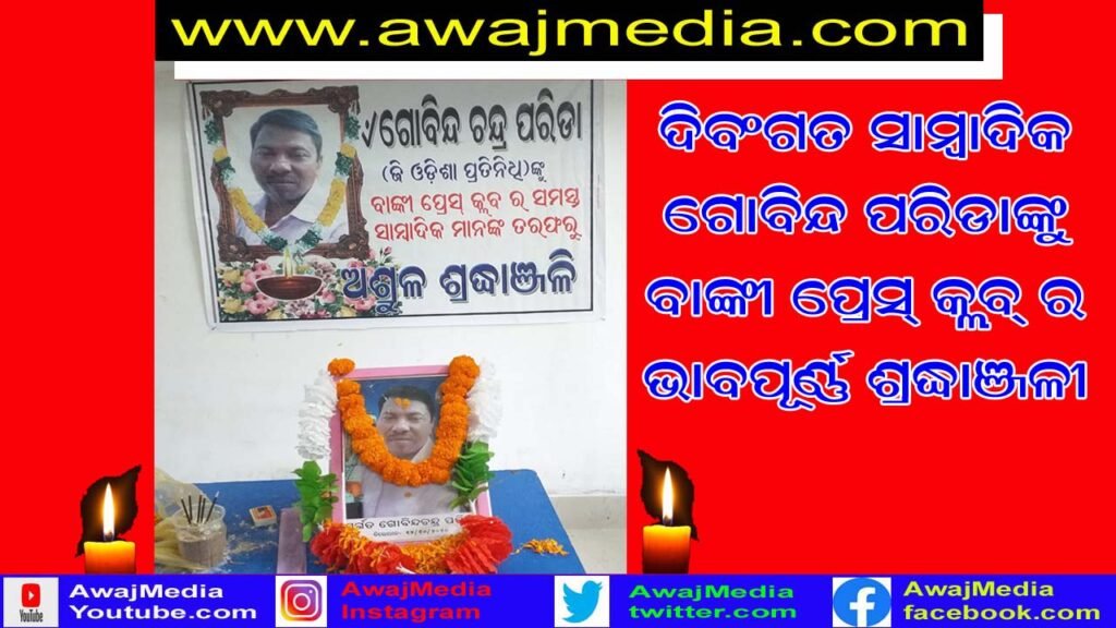 ଦିବଂଗତ ସାମ୍ବାଦିକ ଗୋବିନ୍ଦ ପରିଡାଙ୍କୁ ବାଙ୍କୀ ପ୍ରେସ କ୍ଳବ ତରଫରୁ ଶ୍ରଦ୍ଧାଞ୍ଜଳି !!