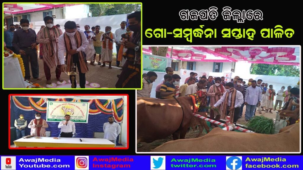 ଗଜପତି ( ଆୱାଜ ମିଡ଼ିଆ ) – ବିବେକାନନ୍ଦ ବେହେରା : ଗଜପତି ଜିଲ୍ଲା ସଦର ମହକୁମା ପାରଳାଖେମୁଣ୍ଡିର ପ୍ରାଣୀ ଚିକିତ୍ସା ଓ ପଶୁପାଳନ ବିଭାଗ ପକ୍ଷରୁ 69 ତମ ଗୋ-ସମ୍ବର୍ଦ୍ଧନା ସପ୍ତାହର ଜିଲ୍ଲାସ୍ତରୀୟ ସମାପନ ସମାରୋହ ଅନୁଷ୍ଠିତ ହୋଇଯାଇଛି । ଏହି କାର୍ଯ୍ୟକ୍ରମରେ ମୁଖ୍ୟ ଅତିଥି ଭାବେ ଗଜପତି ଜିଲ୍ଲାପାଳ ଅନୁପମ ସାହା ଉପସ୍ଥିତ ରହି ପ୍ରଦୀପ ପ୍ରଜ୍ବଳନ କରି ଶୁଭାରମ୍ଭ କରିଥିଲେ । ସମ୍ନାନିତ ଅତିଥି ଭାବେ ଜିଲ୍ଲା ମୁଖ୍ୟପ୍ରାଣୀ ଚିକିତ୍ସା ଅଧିକାରୀ ଡ଼.ଶ୍ରୀନିବାସ ସାହୁ ଏହି କାର୍ଯ୍ୟକ୍ରମରେ ଗୋମାତାଙ୍କୁ ପୂଜାର୍ଚନା କରିଥିଲେ। ଏହାପରେ ଜିଲ୍ଲାପାଳ ଗୋ ମାତାଙ୍କୁ ପୁଷ୍ପମାଳ ଦେଇ ସବୁଜ ଘାସ ଓ ଦାନା ଖୁଆଇ ଥିଲେ । ପରେ ପ୍ରାଣୀ ଚିକିତ୍ସା ଅଧିକାରୀଙ୍କ କନଫେରେନ୍ସ ହଲଠାରେ ଏକ ବୈଠକ ଅନୁଷ୍ଠିତ ହୋଇଥିଲା । ବୈଠକରେ ବିଭିନ୍ନ ବ୍ଳକର ଚାଷୀ ଉପସ୍ଥିତ ଥିଲେ ଜିଲ୍ଲାପାଳ ଶ୍ରୀ ଅନୁପମ ସାହା ଚାଷୀ ମାନଙ୍କୁ ବିଭାଗ ପକ୍ଷରୁ ଦିଆଯାଉଥିବା ବିଭିନ୍ନ ଯୋଜନା ଉପରେ ସମ୍ୟକ ସୂଚନା ଦେବା ସହ ଗୋ-ସମ୍ପଦ ବିକାଶ ଦ୍ଵାରା ଚାଷୀ ମାନଙ୍କର ଆର୍ଥିକ ବିକାଶ ହୋଇ ପାରିବ ବୋଲି ମତ ରଖିଥିଲେ . ସମସ୍ତ ଚାଷୀ ଗୋ ପାଳନ କଲେ ନିଜର ଜୀବନ ଜୀବିକା ସହ ସମାଜର ମୁଖ୍ୟ ସ୍ରୋତରେ ପହଞ୍ଚି ପାରି ସାମାଜିକ ଅର୍ଥନୈତିକ ବୃଦ୍ଧି ହୋଇ ପାରିବ। ବିଭାଗ ପକ୍ଷରୁ କୁକୁଡ଼ା ଚିଆଁ ଉତ୍ପାଦନ କେନ୍ଦ୍ର ରହିଛି ସେଠାରୁ ଚାଷୀ ଭାଇ ଭଉଣୀ ମାନେ କୁକୁଡ଼ା ଚିଆଁ କ୍ରୟ କରି କୁକୁଡ଼ା ଚାଷ କରି ସ୍ୱାବଲମ୍ବୀ ହୋଇପାରିବେ ପରେ ଅନ ଲାଇନ ଟ୍ରେନିଙ୍ଗରେ ସହଭାଗିତା କରିଥିଲେ ସି.ଡ଼ି.ଭି.ଓ . ଆଜି ଜିଲ୍ଲାର ତିନୋଟି ସ୍ଥାନରେ ଗୋ ସମ୍ବର୍ଦ୍ଧନା ସମାରୋହ ଅନୁଷ୍ଠିତ ହୋଇଥିବା ସମୟରେ କାଶୀ ନଗର, ଆର.ଉଦୟଗିରି ଓ ପାରଳାଖେମୁଣ୍ଡି ପଶୁ ଚିକିତ୍ସାଳୟ ଠାରେ କାର୍ଯ୍ୟକ୍ରମ ଅନୁଷ୍ଠିତ ହୋଇଛି। ଏହି ସମାରୋହରେ ଏଡି.ଭି. ଓ ପ୍ରଶାନ୍ତ କୁମାର ସାମଲ, ଡ଼.ଅଭିଜିତ ମିଶ୍ର, ଡ଼.ଶୁଭ ବିକାଶ ମଲ୍ଲିକ ବିଭିଓ ଗୁମ୍ମା ତଥା ସି.ଡି ଭି.ଓ ଅଫିସ, ବ୍ଳକ ଭେଟନେରୀ ଅଫିସ, ରାୟଗଡ,ଗୁମ୍ମା ଓ ପାରଳାଖେମୁଣ୍ଡିର ସମସ୍ତ କର୍ମଚାରୀ ମାନଙ୍କର ସହଯୋଗରେ ଓ କୋଭିଡ଼ି- 19 ନିୟମ ପାଳନ କରି ଏହି କାର୍ଯ୍ୟକ୍ରମ ଅନୁଷ୍ଠିତ ହୋଇଥିଲା।