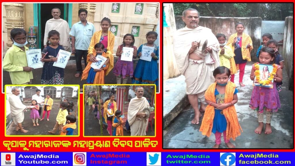 ଗଜପତି ( ଆୱାଜ ମିଡ଼ିଆ ) – ବିବେକାନନ୍ଦ ବେହେରା : ପବିତ୍ର କାର୍ତ୍ତିକ ଶୁକ୍ଳ ତ୍ରୟୋଦଶୀ ତିଥିରେ ଜଗତଗୁରୁତ୍ତମ ଶ୍ରୀକୃପାଳୁ ଜୀ ମହାରାଜଙ୍କ ସପ୍ତମ ବାର୍ଷିକ ମହାପରାୟଣ ଦିବସ ପାଳିତ ହୋଇଯାଇଛି . ଜଗତଗୁରୁତ୍ତମ ଶ୍ରୀକୃପାଳୁ ଜୀ ମହାରାଜ ନିଜର ଓଜସ୍ବୀ ବକ୍ତବ୍ୟ ଦ୍ୱାରା ମାନବ ଜାତିକୁ ଇଶ୍ଵରୀୟ ଜ୍ଞାନର ବିଶୁଦ୍ଧ ରଶ୍ମୀରେ ଉଦଭାସିତ କରିଥିଲେ l ଏହି ଅବସରରେ ବାଳ ମୁକୁନ୍ଦ କେନ୍ଦ୍ରର ଶିଶୁମାନେ ସକାଳୁ ପରିଚ୍ଛା ମଠ ବିଜେ ଶ୍ରୀରାସିକରାଜ ମହାପ୍ରଭୁଙ୍କ ବେଢ଼ା ପରିକ୍ରମା କରି କୃପାଳୁ ମହାରାଜଙ୍କ ଫଟୋଚିତ୍ର ରେ ପୁଷ୍ପମାଲ୍ୟ ଅର୍ପଣ କରିବା ସହ ମହାମନ୍ତ୍ର କୀର୍ତ୍ତନ କରାଯାଇଥିଲା l ଶେଷରେ ଶିଶୁମାନଙ୍କୁ ଖାତା କଲମ ସହ ପ୍ରସାଦ ବଣ୍ଟନ କରାଯାଇଥିଲା .ପରେ ରାଧାଗୋବିନ୍ଦ ଧାମ ଠାରେ ବ୍ରାହ୍ମଣ ସେବା ସହିତ ଯଥାରୀତିରେ ମହାପରାୟଣ ଦିବସ ପାଳନ କରାଯାଇଥିଲା l