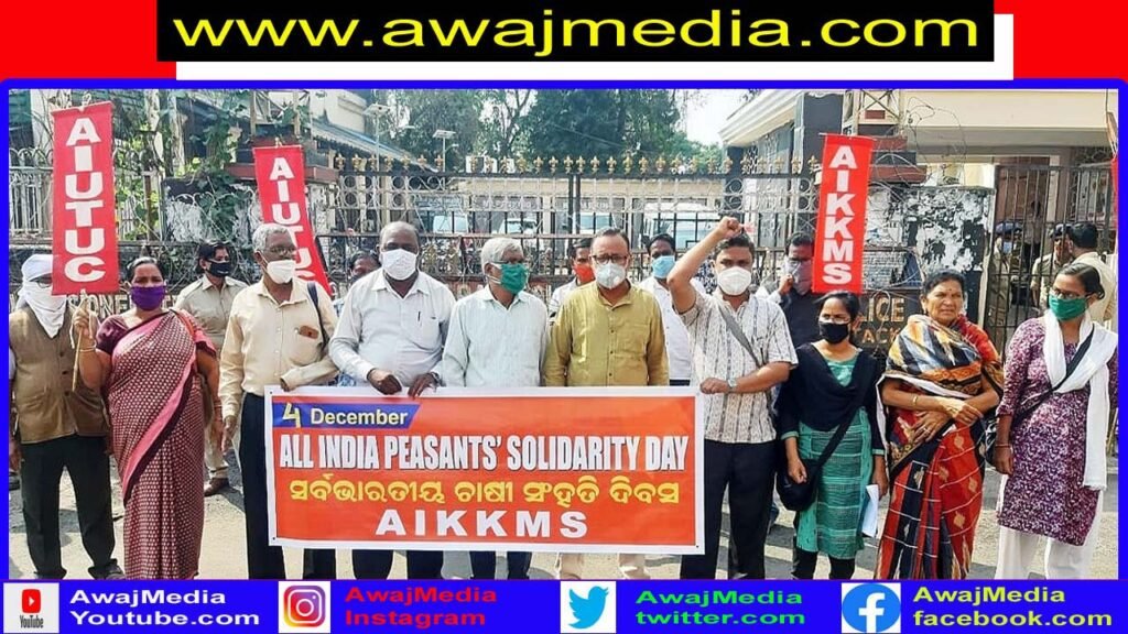 କଟକ ( ଆୱାଜ ମିଡ଼ିଆ ) – ଦିଲ୍ଲୀପ ପତି : କେନ୍ଦ୍ରରେ କ୍ଷମତାସୀନ ବିଜେପି ସରକାର ଚାଷୀମାନଙ୍କର ସର୍ବନାଶ ପାଇଁ ଆଣିଥିବା କଳା କୃଷି ଆଇନ୍ ଯଥା ଚୁକ୍ତି ଚାଷ ଆଇନ୍‌, ୧୯୫୫ ମସିହା ଅତ୍ୟାଆବଶ୍ୟକ ସାମଗ୍ରୀ ଆଇନ୍‌ର ସଂଶୋଧନ, ଘରୋଇ ମଣ୍ଡି ଆଇନ୍ ଓ ବିଦ୍ୟୁତ ଆଇନ୍ ୨୦୨୦ ବାତିଲ ବାଦିରେ ଆନ୍ଦୋଳନ କରିବା ପାଇଁ  ଦେଶର ଲକ୍ଷ ଲକ୍ଷ କୃଷକ ଏବଂ କୃଷି ଶ୍ରମିକମାନେ ଦିଲ୍ଲୀ ଅଭିମୁଖେ ଆଗେଇ ଚାଲିଥିଲର । ମାତ୍ର  ଆନ୍ଦୋଳନକାରୀଙ୍କୁ ଦିଲ୍ଲୀ ମଧ୍ୟକୁ ପ୍ରବେଶ କରାନଦେବା ଉଦ୍ଦେଶ୍ୟରେ ସରକାର ସେମାନଙ୍କୁ ଦିଲ୍ଲୀ ସୀମାରେ ଅଟକାଇ ୧୪୪ ଧାରା ଜାରି କରିବା, ହଜାର ହଜାର ଚାଷୀ ଓ ନେତାମାନଙ୍କୁ ଜବରଦସ୍ତ ଅଟକ ରଖିବା ସହ ପ୍ରଚଣ୍ଡ ଶୀତରେ ସେମାନଙ୍କ ଉପରେ ପାଣିମାଡ଼ କଲେ, ଲୁହବୁହା ଗ୍ୟାସ୍‍ ଛାଡ଼ିଲେ । ଏହି ସବୁ ବର୍ବରତାକୁ ଦୃଢ଼ତାର ସହ ସାମ୍ନା କରି ଲକ୍ଷ ଲକ୍ଷ ଚାଷୀ ରାଜରାସ୍ତାରେ ବସି ରହିଛନ୍ତି । ଏହି ଆନ୍ଦୋଳନକୁ ସଂହତି ଜଣାଇ ତଥା କଳା କୃଷି ଆଇନ୍ ବାତିଲ ଦାବିରେ ଶ୍ରମିକ ସଂଗଠନ ଏ.ଆଇ.ୟୁ.ଟି.ୟୁ.ସି.ଓ କୃଷକ ସଂଗଠନ ଏ.ଆଇ.କେ.କେ.ଏମ୍‌.ଏସ୍ ପକ୍ଷରୁ ଆଜି କଟକ ଜିଲ୍ଲାପାଳ ଅଫିସ ସମ୍ମୁଖରେ ବିକ୍ଷୋଭ ପ୍ରଦର୍ଶନ କରାଯାଇ ପ୍ରଧାନ ମନ୍ତ୍ରୀଙ୍କ ଉଦ୍ଦେଶ୍ୟରେ ଦାବି ପତ୍ର ପ୍ରଦାନ କରାଯାଇଛି ।  ବିକ୍ଷୋଭ ସଭାରେ ଏସ୍‌.ୟୁ.ସି,ଆଇ(ସି) କଟକ ଜିଲ୍ଲା ସଂପାଦକ ବିଶ୍ୱାବସୁ ଦାସ, ଏ.ଆଇ.ୟୁ.ଟି.ୟୁ.ସି କଟକ ଜିଲ୍ଲା ସଂପାଦକ  ରାଜକିଶୋର ମଲ୍ଲିକ, ଶ୍ରମିକ ନେତା ଖଗେଶ୍ୱର ସେଠୀ, ଚାଷୀ ନେତା ବସନ୍ତ ନାୟକ, ଏସ୍‌.ୟୁ.ସି,ଆଇ(ସି) କଟକ ଜିଲ୍ଲା କମିଟି ସଭ୍ୟ ସିଦ୍ଧାର୍ଥ ରଥ, ଶ୍ରମିକ ରେତା ଦିପକ ଦାସ, ସସ୍ମିତା ମହାନ୍ତି, ଶୋଭା ଦେହୁରୀ, ପାଭେଲ ପ୍ରିୟଦର୍ଶନ ଓ ସ୍ୱାଧୀନୀ ବେହେରା ପ୍ରମୁଖ ଯୋଗ ଦେଇ କେନ୍ଦ୍ର ସରକାରଙ୍କ ର ଏହି ଚକ୍ରାନ୍ତକାରୀ କୃଷି ମାରଣ ନୀତିକୁ ତୀବ୍ର ନିନ୍ଦା କରଥିଲେ।