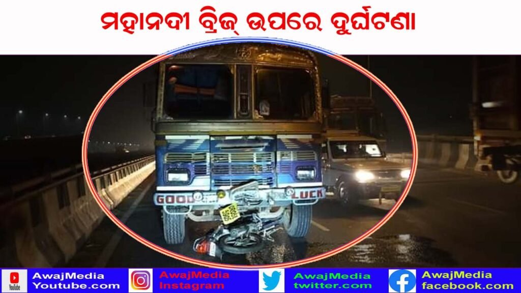 କଟକ ( ଆୱାଜ ମିଡ଼ିଆ ) – ଦିଲ୍ଲୀପ ପତି : ମହାନଦୀ ପୋଲ ଉପରେ ପୁଣି ଅଘଟଣ . କଟକ ସହର ଉପକଣ୍ଠ ଶିଖରପୁର ମହାନଦୀ ପୋଲ ଉପରେ ଟ୍ରକ ଧକ୍କାରେ ବାଇକ ଚାଳକଙ୍କ ମୃତ୍ୟୁ ହୋଇଥିବାର ସୂଚନା ମିଳିଛି . ଦୁର୍ଘଟଣା ଘଟାଇଥିବା ଟ୍ରକ କୁ ଜବତ କରି ପୁଲିସ ଆରମ୍ଭ କରିଛି ତଦନ୍ତ