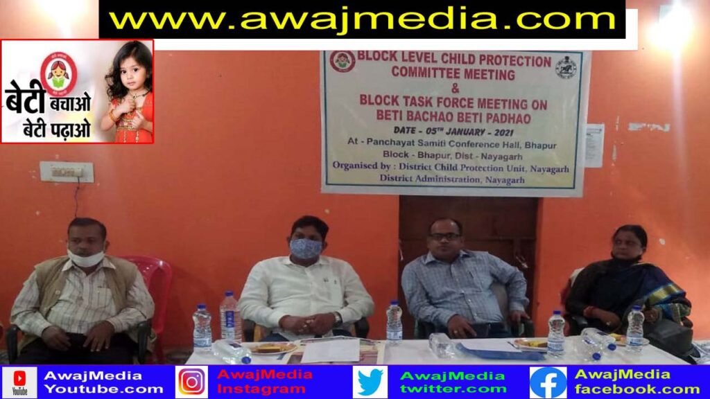 ନୟାଗଡ ( ଆୱାଜ ମିଡ଼ିଆ ) – କିଶୋର ମହାପାତ୍ର : ନୟାଗଡ଼ ଜିଲ୍ଲା ପ୍ରଶାସନ ପକ୍ଷରୁ ଭାପୁର ବ୍ଲକ ସଭାଗୃହ ଠାରେ ବେଟି ପଢାଓ ବେଟି ବଞ୍ଚାଅ ସଚେତନତା କାର୍ଯ୍ୟକ୍ରମ ଅନୁଷ୍ଠିତ ହୋଇଯାଇଛି । ଭାପୁର ବିଡ଼ିଓ ସତ୍ୟସୁନ୍ଦର ରାଉତଙ୍କ ପୈାରହିତରେ ଅନୁଷ୍ଠିତ ଏହି କାର୍ଯ୍ୟକ୍ରମ ରେ ବ୍ଲକ ଉପାଧ୍ୟକ୍ଷ ଗୟାଧର ପରିଡା ଯୋଗଦେଇ କହିଥିଲେ, ସେ ଝିଅ ହେଉ କି ପୁଅ ସମସ୍ତ ଙ୍କୁ ସୁରକ୍ଷା ଦେବାରେ ବାପା ମାଆ ଯତ୍ନବାନ ହେବା ଆବଶ୍ୟକ । ସମସ୍ତେ ସଚେତନ ହେଲେ ବାଳ ଅପରଧ ରୋକିହେବ । ଏହି କାର୍ଯ୍ୟକ୍ରମରେ ଜିଲ୍ଲା ଶିଶୁ ସୁରକ୍ଷା ଅଧିକାରୀ ଉପେନ୍ଦ୍ର ବଡ଼ଜେନା, ସତ୍ୟରଞ୍ଜନ ଦାସ ଓ ସ୍ଥାନୀୟ ସମସ୍ତ ଲୋକ ପ୍ରତିନିଧି ଯୋଗ ଦେଇଥିଲେ ।