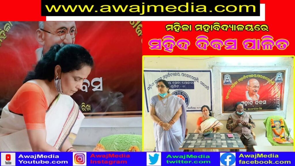 ଗଜପତି ( ଆୱାଜ ମିଡ଼ିଆ ) – ବିବେକାନନ୍ଦ ବେହେରା : ଗଜପତି ଜିଲ୍ଲା ସଦର ମହକୁମା ପାରଳାଖେମୁଣ୍ଡି ସ୍ଥାନିୟ ଯୁକ୍ତ ୩ ମହିଳା ମହା ବିଦ୍ୟାଳୟ ପରିସରରେ ମହାତ୍ମାଗାନ୍ଧୀଙ୍କ ପବିତ୍ର ପୁଣ୍ୟତିଥିକୁ ସହୀଦ ଦିବସ ଭାବେ ଜାତୀୟ ସେବା ଯୋଜନା ତରଫରୁ ନିରାଡ଼ମ୍ବର ଭାବେ ପାଳନ କରାଯାଇଛି । ଅଧ୍ୟକ୍ଷା ଡ଼.ରୀନା ସାହୁ ମୁଖ୍ୟ ଅତିଥି ଭାବେ ଏବଂ ବରିଷ୍ଠ ସାହିତ୍ୟିକ ତଥା ସାହିତ୍ୟ ଏକାଡେମୀ ସଦସ୍ୟ ବିଚିତ୍ରା ନନ୍ଦ ବେବର୍ତ୍ତା ମୁଖ୍ୟ ବକ୍ତା ଭାବେ ଯୋଗଦେଇ ପ୍ରଦୀପ ପ୍ରଜ୍ବଳନ ପୂର୍ବକ ସଭା ର ଉଦଘାଟନ କରିଥିଲେ । ସଭାକାର୍ଯ୍ୟ ପୂର୍ବରୁ ଭାରତମାତାର ସହୀଦ ମାନଙ୍କ ଉଦ୍ଦେଶ୍ୟରେ ଦୁଇ ମିନିଟ ନିରବ ପ୍ରାର୍ଥନା କରାଯାଇଥିଲା .