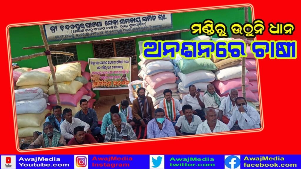 ଖୋର୍ଦ୍ଧା ( ଆୱାଜ ମିଡ଼ିଆ ) – ଗଙ୍ଗାଧର ସାହୁ : ଖୋର୍ଦ୍ଧା ଜିଲ୍ଲା ବୋଲଗଡ଼ ବ୍ଲକର ଶ୍ରୀଚନ୍ଦନପୁର (ହାଟବସ୍ତ) ପାଟ୍ଟଣା ସେବା ସମବାୟ ସମିତି ଲିଃ ସମ୍ମୁଖ ରେ ଧାରଣା ଦେଇଥିଲେ ଚାଷୀ। ସରକାରଙ୍କ ନିଦ୍ଦେର୍ଶ କ୍ରମେ ନାମ ପଞ୍ଜୀକରଣ କରିଥିବା ଚାଷୀଙ୍କ ଠାରୁ ୧୪୦୦୦ କ୍ବିଣ୍ଟାଲ୍ ର ଧାନ ମଣ୍ଡୀ ରୁ କ୍ରୟ କରିବାକୁ ଧାର୍ଯ୍ୟ ରଖିଛନ୍ତି ।