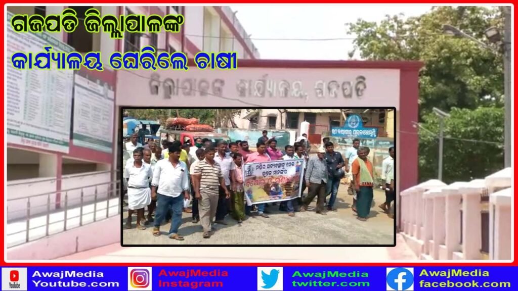 ଗଜପତି ( ଆୱାଜ ମିଡ଼ିଆ ) – ବିବେକାନନ୍ଦ ବେହେରା : ଗଜପତି ଜିଲ୍ଲା ସଦର ମହକୁମା ପାରଳାଖେମୁଣ୍ଡି ଠାରେ ଜିଲ୍ଲା କୃଷକ ସଙ୍ଘର କୃଷକମାନେ ଫାୟାର ଷ୍ଟେସନ ଛକ ଠାରୁ ଏକତ୍ରିତ ହୋଇ ବିଭିନ୍ନ ସ୍ଲୋଗାନ ଦେଇ ଜିଲ୍ଲାପାଳ ଙ୍କ କାର୍ଯ୍ୟାଳୟ ସମ୍ମୁଖରେ ପହଁଞ୍ଚି ବିକ୍ଷୋଭ ପଦର୍ଶନ କରିଥିଲେ । ଜିଲ୍ଲା କୃଷକ ସଙ୍ଘ ସଭାପତି ସୂର୍ଯ୍ୟ ନାରାୟଣ ପଟ୍ଟନାୟକ ଓ ପାରଳାଖେମୁଣ୍ଡି ପୂର୍ବତନ ବିଧାୟକ ବିଜୟ ଜେନାଙ୍କ ନେତୃତ୍ୱରେ ଏହି ବିକ୍ଷୋଭ ଗଣ ଧାରଣା କରାଯାଇଥିଲା । ଜିଲ୍ଲା କୃଷକ ସଙ୍ଘ ତରଫରୁ ପାଞ୍ଚ ଦଫା ସମ୍ବଳିତ ଏକ ଦାବିପତ୍ର ଜିଲ୍ଲା ପ୍ରଶାସନକୁ ପ୍ରଦାନ କରାଯାଇଥିଲା ।