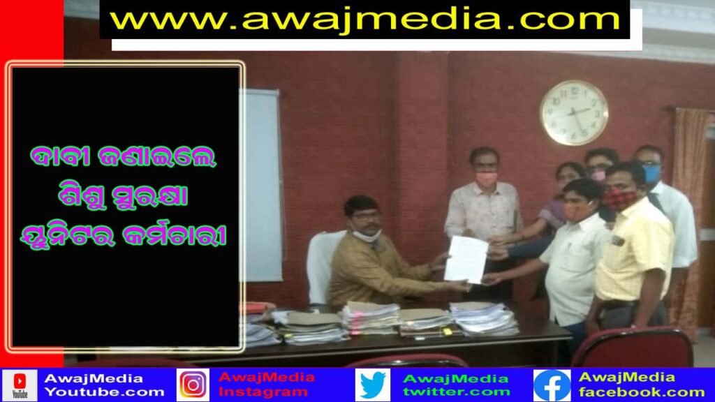 ଶିଶ ସୁରକ୍ଷା କର୍ମଚାରୀଙ୍କ ମୁଖ୍ୟମନ୍ତ୍ରୀ ଙ୍କ ଉଦ୍ଦେଶ୍ୟରେ ଅତିରିକ୍ତ ଜିଲ୍ଲାପାଳଙ୍କୁ ସ୍ମାରକପତ୍ର ପ୍ରଦାନ !!!