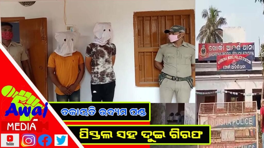 ଖୋର୍ଦ୍ଧା ( ଆୱାଜ ମିଡ଼ିଆ ) – ଯୋଗେଶ୍ଵର ପଣ୍ଡା : ଖୋର୍ଦ୍ଧା ଆଦର୍ଶ ଥାନା ପୋଲିସ ଗତକାଲି ରାତିରେ ପାଟ୍ରୋଲିଂ କରୁଥିବା ସମୟରେ ଡକାୟତି ପାଇଁ ଯୋଜନା କରୁଥିବା ଦୁଇ ଅଭିଯୁକ୍ତକୁ ଗିରଫ କରିଛି । ଏ ନେଇ ଆଜି ଖୋର୍ଦ୍ଧା ଜିଲ୍ଲା ଏସଡିପିଓ ସୁଶିଲ କୁମାର ମିଶ୍ର ସାମ୍ବାଦିକ ସମ୍ମିଳନୀ କରି ସମସ୍ତ ଘଟଣା ପ୍ରକାଶ କରିଛନ୍ତି । ଅଭିଯୁକ୍ତ ମାନଙ୍କ ଠାରୁ ଦୁଇଟି ମୋବାଇଲ ଫୋନ ଓ ଦୁଇଟି ପିସ୍ତଲ ସହ ୩ ରାଉଣ୍ଡ ଗୁଳି ଜବତ କରିଛନ୍ତି ବୋଲି ସାମ୍ବାଦିକ ମାନଙ୍କୁ ସୂଚନା ଦେଇଛନ୍ତି ।