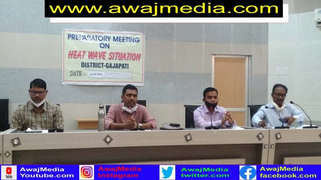 ଗଜପତି ( ଆୱାଜ ମିଡ଼ିଆ ) – ବିବେକାନନ୍ଦ ବେହେରା : ଗଜପତି ଜିଲ୍ଲା ସଦର ମହକୁମା ପାରଳାଖେମୁଣ୍ଡି ସ୍ଥିତ ୟୁନିୟନ ଗ୍ରାମୀଣ ଆତ୍ମ ନିଯୁକ୍ତି ପ୍ରଶିକ୍ଷଣ କେନ୍ଦ୍ର ଠାରେ ଗ୍ରୀଷ୍ମପ୍ରବାହ କୁ ଆଖି ଆଗରେ ରଖି ଜିଲ୍ଲା ସ୍ତରୀୟ ଏକ ପ୍ରସ୍ତୁତି ବୈଠକ ଜିଲ୍ଲାପାଳ ଅନୁପମ ସାହାଙ୍କ ଅଧ୍ୟକ୍ଷତାରେ ଅନୁଷ୍ଠିତ ହୋଇଯାଇଛି ।ଏହି ବୈଠକରେ ଗ୍ରାମ୍ୟ ଉନ୍ନୟନ ପ୍ରକଳ୍ପ ପ୍ରଶାସକ ମହେଶ ଚୌଧୁରୀ, ଉପ ଜିଲ୍ଲାପାଳ ସଂଗ୍ରାମ ଶେଖର ପଣ୍ଡା, ଆଦିବାସୀ ଉନ୍ନୟନ ପ୍ରକଳ୍ପ ପ୍ରଶାସକ ସରୋଜ କୁମାର ବେହେରା ପ୍ରମୁଖ ଅଂଶ ଗ୍ରହଣ କ୍ରୀତଜିଲେ । ବୈଠକରେ ଜିଲ୍ଲାର ଗୋଷ୍ଠୀ ଉନ୍ନୟନ ଅଧିକାରୀ, ଶିଶୁ ବିକାଶ ପ୍ରକଳ୍ପ ଅଧିକାରୀ, ଜିଲ୍ଲା ଶିକ୍ଷା ଅଧିକାରୀ, ଗ୍ରାମ୍ୟ ଜଳ ଯୋଗାଣ ନିର୍ବାହୀ ଅଧିକାରୀ, ପୌର ପରିଷଦ କାର୍ଯ୍ୟ ନିର୍ବାହୀ ଅଧିକାରୀ, ବିଦ୍ୟୁତ ବିଭାଗ କାର୍ଯ୍ୟ ନିର୍ବାହୀ ଅଧିକାରୀ, ଜନ ସ୍ଵାସ୍ଥ୍ୟ ନିର୍ବାହୀ ଅଧିକାରୀ, ଜିଲ୍ଲା ମୁଖ୍ୟ ଚିକିତ୍ସା ଅଧିକାରୀ, ବିଭିନ୍ନ କଲେଜର ଅଧ୍ୟକ୍ଷା, ବନ ବିଭାଗ ଅଧିକାରୀଙ୍କ ସମେତ ବିଭିନ୍ନ ବିଭାଗୀୟ ଅଧିକାରୀ ଉପସ୍ଥିତ ଥିଲେ . ଜିଲ୍ଲାରେ ଗ୍ରୀଷ୍ମ ପ୍ରବାହକୁ କିପରି ମୁକାବିଲା କରାଯାଇ ପାରିବ ଓ ଅଂଶୁଘାତ କୁ ପ୍ରତିହତ କରାଯାଇ ପାରିବ ତା ଉପରେ ଆଲୋଚନା ହୋଇଥିଲା .