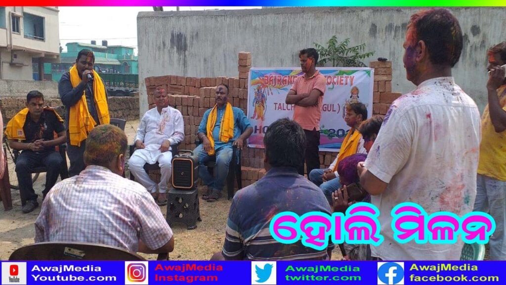 ତାଳଚେର ( ଆୱାଜ ମିଡ଼ିଆ ) – ଜମ୍ବେଶ୍ଵର ପଟ୍ଟନାୟକ : ଆନନ୍ଦ ଉଲ୍ଲାସ ରଙ୍ଗର ପର୍ବ ହୋଲି . କୋଭିଡ କଟକଣା ଦୃଷ୍ଟିରୁ ହୋଲିର ଚମକ ସାମାନ୍ୟ ଫିକା ପଡ଼ିଥିଲେ ବି , ରାଜ୍ୟର ବିଭିନ୍ନ ସ୍ଥାନରେ ପାଳିତ ହୋଇଛି ହୋଲି ଉତ୍ସବ . ଅନୁଗୁଳ ଜିଲ୍ଲା ତାଳଚେର ବଜରଙ୍ଗ ସେବା ସୋସାଇଟି ତରଫରୁ ହୋଲି ମିଳନ କାର୍ଯ୍ୟକ୍ରମ ଅନୁଷ୍ଠିତ ହୋଇଯାଇଛି .