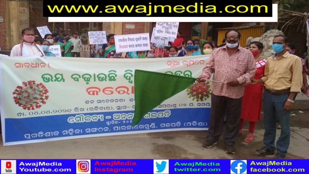 ଗଜପତି ( ଆୱାଜ ମିଡ଼ିଆ ) – ବିବେକାନନ୍ଦ ବେହେରା : ଗଜପତି ଜିଲ୍ଲା ସଦର ମହକୁମା ପାରଳାଖେମୁଣ୍ଡି ର ଅଗ୍ରଣୀ ମହିଳା ସଙ୍ଗଠନ ” ଅନନ୍ୟା” ଆନୁକୂଲ୍ୟରେ କୋଭିଡ ସଚେତନତା କାର୍ଯ୍ୟକ୍ରମ ଅନୁଷ୍ଠିତ ହୋଇଯାଇଛି । କରୋନା ସଂକ୍ରମଣରୁ ନିଜକୁ କିଭଳି ସତର୍କ ରହି ସରକାରଙ୍କ କରୋନା ନିୟମାବଳୀ ତଥା ମାର୍ଗଦର୍ଶିକାକୁ ମାନିବେ ସେ ଉଦ୍ଦେଶ୍ୟ ନେଇ ଏକ ବିରାଟ ଜନ ସଚେତନତା ଶୋଭାଯାତ୍ରା ବାହାରି ନଗର ପରିକ୍ରମା କରିଥିଲା । ସ୍ଥାନୀୟ ମହାରାଜାଙ୍କ ରାଜ ନହର ଠାରୁ ବାହାରିଥିବା ସଚେତନତା ଶୋଭାଯାତ୍ରାକୁ ପୌର ପରିଷଦର ଯନ୍ତ୍ରୀ ସଞ୍ଜୀବ କୁମାର ଚମ୍ପତ୍ତି ଓ “ଅନନ୍ୟା”ର ଉପଦେଷ୍ଟା ଶିକ୍ଷାବିତ ବିଚିତ୍ରାନନ୍ଦ ବେବର୍ତ୍ତା ମିଳିତ ଭାବେ ସବୁଜ ପତାକା ଦେଖାଇ ଶୁଭାରମ୍ଭ କରିଥିଲେ । ଶୋଭାଯାତ୍ରାଟି ନଗର ପରିକ୍ରମା କରିବା ସହ କରୋନା ସଂକ୍ରମଣରୁ ନିଜକୁ କିଭଳି ଦୁରେଇ ରହିବେ , ସେ ସମ୍ପର୍କିତ ବିଭିନ୍ନ ସ୍ଲୋଗାନ ମାନ ଦେବା ସହ ପ୍ଲା-କାର୍ଡ ଧରି ଲୋକଙ୍କୁ ସଚେତନ କରାଇଥିଲେ ।