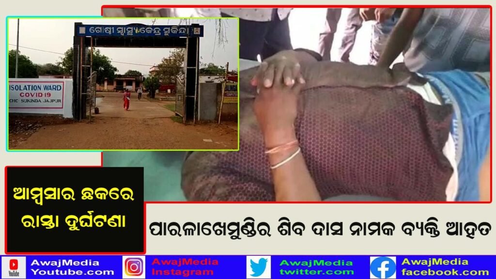 ଯାଜପୁର ( ଆୱାଜ ମିଡ଼ିଆ ) – ଜିଜ୍ଞାସୁ ସାହୁ : ଆମ୍ବସାର ଛକରେ ବାଇକ ଦୁର୍ଘଟଣା ରେ ଗଜପତି ଜିଲ୍ଲାର ପାରଳାଖେମୁଣ୍ଡି ଗ୍ରାମର ଶିଵ ଦାସ ନାମକ ବ୍ୟକ୍ତି ଆହତ ହୋଇଥିବାର ସୂଚନା ମିଳିଛି । ଗଜପତି ଜିଲ୍ଲା ପାରଳାଖେମୁଣ୍ଡି ଗ୍ରାମର ଶିଵ ଦାସ ସୁକିନ୍ଦାକୁ ବ୍ୟକ୍ତିଗତ କାର୍ଯ୍ୟରେ ଆସିଥିବା ସମୟରେ ସୁକିନ୍ଦା ବ୍ଲକ ଅଧିନସ୍ଥ ଆମ୍ବସାର ଛକ ମୁଖ୍ୟ ରାସ୍ତାରେ ବାଇକ ଦୁର୍ଘଟଣା ହେବାରୁ ସେ ରାସ୍ତାରେ ପଡି ରହିଥିଲେ . ସ୍ଥାନୀୟ ଲୋକ ତାଙ୍କୁ ଉଦ୍ଧାର କରି ସୁକିନ୍ଦା ଗୋଷ୍ଠୀ ସ୍ୱାସ୍ଥ୍ୟ କେନ୍ଦ୍ରରେ ଭର୍ତ୍ତି କରାଇଛନ୍ତି . ସୁକିନ୍ଦା ଗୋଷ୍ଠୀ ସ୍ୱାସ୍ଥ୍ୟ କେନ୍ଦ୍ରରର ଡାକ୍ତରଙ୍କ ସୂଚନା ମୁତାବକ ଶିଵ ଦାସଙ୍କର ସ୍ୱାସ୍ଥ୍ୟ ଅବସ୍ଥା ସ୍ଥିର ଥିବା ଜଣାଯାଇଛି .