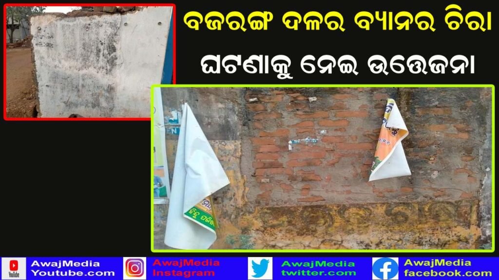 ଯାଜପୁର ( ଆୱାଜ ମିଡ଼ିଆ ) – ଶୁଭମ ଓଝା : ଯାଜପୁର ଜିଲ୍ଲା ସୁକିନ୍ଦା ବ୍ଲକ ଅଧିନସ୍ଥ ସୁକିନ୍ଦା ମହାବିଦ୍ୟାଳୟ ସମ୍ନାରେ ବଜରଙ୍ଗ ଦଳ ତରଫରୁ ରାଷ୍ଟ୍ରୀୟ ନବବର୍ଷ, ମହା ବିଷୁବ ପଣାସଂକ୍ରାନ୍ତି, ହନୁମାନ ଜୟନ୍ତୀ, ଓଡ଼ିଆ ନବବର୍ଷ ଓ ଅଯୋଧ୍ୟାରେ ଭବ୍ୟ ରାମ ମନ୍ଦିର ନିର୍ମାଣ ନିମନ୍ତେ ଲାଗିଥିବା ବ୍ୟାନରକୁ କିଛି ଅଜଣା ବ୍ୟକ୍ତି ଚିରିବା ଘଟଣାକୁ ନେଇ ଦେଖା ଦେଇଛି ଉତ୍ତେଜନା .