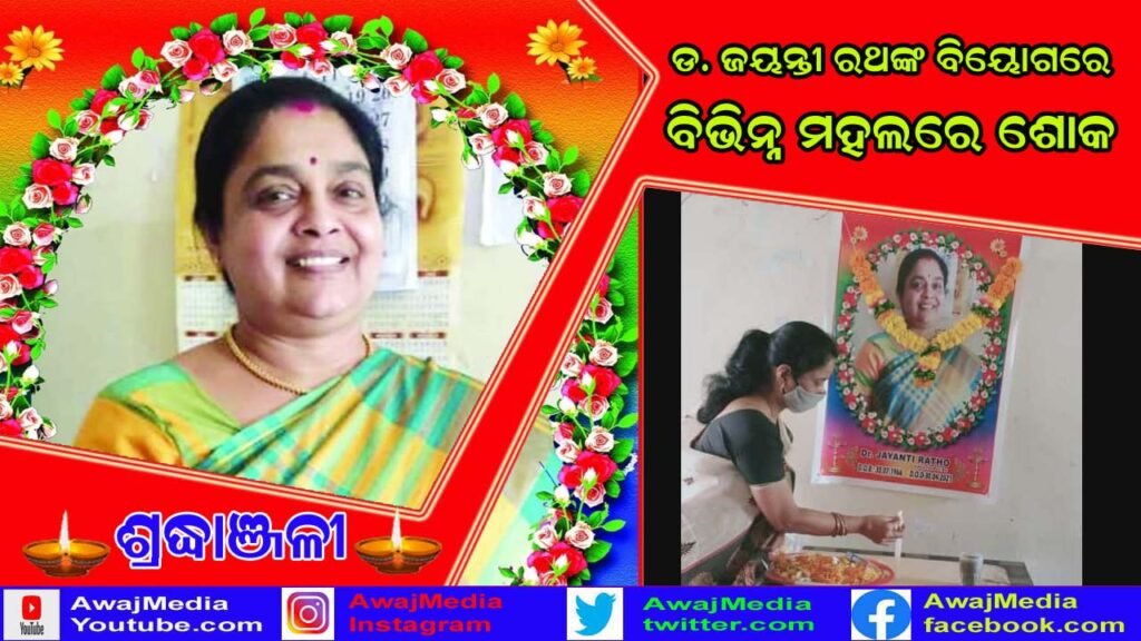 ଗଜପତି ( ଆୱାଜ ମିଡ଼ିଆ ) – ବିବେକାନନ୍ଦ ବେହେରା : ଗଜପତି ଜିଲ୍ଲା ସଦର ମହକୁମା ପାରଳାଖେମୁଣ୍ଡି ସ୍ଥିତ ମହିଳା ସ୍ନାତକ ମହା ବିଦ୍ୟାଳୟର ରାଜନୀତି ବିଜ୍ଞାନ ବିଭାଗର ଅଧ୍ୟାପିକା ଡ଼.ଜୟନ୍ତୀ ରଥଙ୍କ କରୋନାରେ ବ୍ରହ୍ମପୁର ଅଶ୍ୱିନୀ ହସ୍ପିଟାଲରେ ଚିକିତ୍ସିତ ଅବସ୍ଥାରେ ବିୟୋଗ ହୋଇଯାଇଛି । ତାଙ୍କ ବିୟୋଗ ଖବର ପ୍ରଚାରିତ ହେବା ପରେ ଗଜପତି ଜିଲ୍ଲାର ବିଭିନ୍ନ ମହଲରେ ଶୋକର ଛାୟା ଖେଳିଯାଇଛି ।