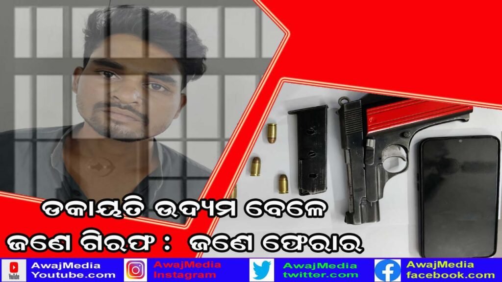 କନ୍ଧମାଳ ( ଆୱାଜ଼ ମିଡ଼ିଆ ) – ସଞ୍ଜୟ କୁମାର ପାଣିଗ୍ରାହୀ : କନ୍ଧମାଳ ଜିଲ୍ଲା ଫୁଲବାଣୀର ଜଣେ ହୋମଗାର୍ଡ ନିଜ ଗ୍ରାମ ଦୂତିମେଣ୍ଡି ରୁ ଫୁଲବାଣୀକୁ ଶନିବାର ରାତିରେ ନିଜ ମୋଟର ସାଇକେଲ ରେ ଆସୁଥିବା ବେଳେ ଏଫ୍.ସି.ଆଇ ଛକ ନିକଟ ରାସ୍ତାରେ ଦୁଇଜଣ ଯୁବକ ମୋଟର ସାଇକେଲ ଅଟକାଇ ବନ୍ଧୁକ ଦେଖାଇ ଡକାୟତି ଉଦ୍ୟମ କରୁଥିବା ବେଳେ ଖବର ପାଇ ଫୁଲବାଣୀ ଟାଉନ୍ ଥାନା ପୋଲିସ ତତକ୍ଷଣାତ ଘଟଣାସ୍ଥଳରେ ପହଞ୍ଚି କାହ୍ନୁ ନାୟକ ନାମକ ଏକ ଯୁବକ କୁ ଗିରଫ କରିଥିବା ବେଳେ ଅନ୍ୟ ଜଣେ ସହଯୋଗୀ ଘଟଣା ସ୍ଥଳରୁ ଚମ୍ପଟ ମାରିଥିଲା ।