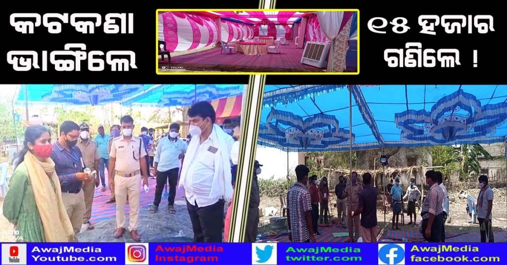 ଗଜପତି ( ଆୱାଜ ମିଡ଼ିଆ ) – ବିବେକାନନ୍ଦ ବେହେରା : ମହଙ୍ଗା ପଡିଲା କଟକଣା ନ ମାନି ଭୋଜିଭାତ ର ଆୟୋଜନ । କୋଭିଡ କଟକଣା ଉଲ୍ଲଙ୍ଘନ ଅଭିଯୋଗରେ ପ୍ରଶାସନ ଚଢ଼ାଉ କରିବା ପରେ ଆୟୋଜକ 15 ହଜାର ଜରିମାନା ଗଣିବା ଘଟଣା ସ୍ଥାନୀୟ ଅଞ୍ଚଳରେ ଆଲୋଚନା ର ବିଷୟ ପାଲଟିଛି .