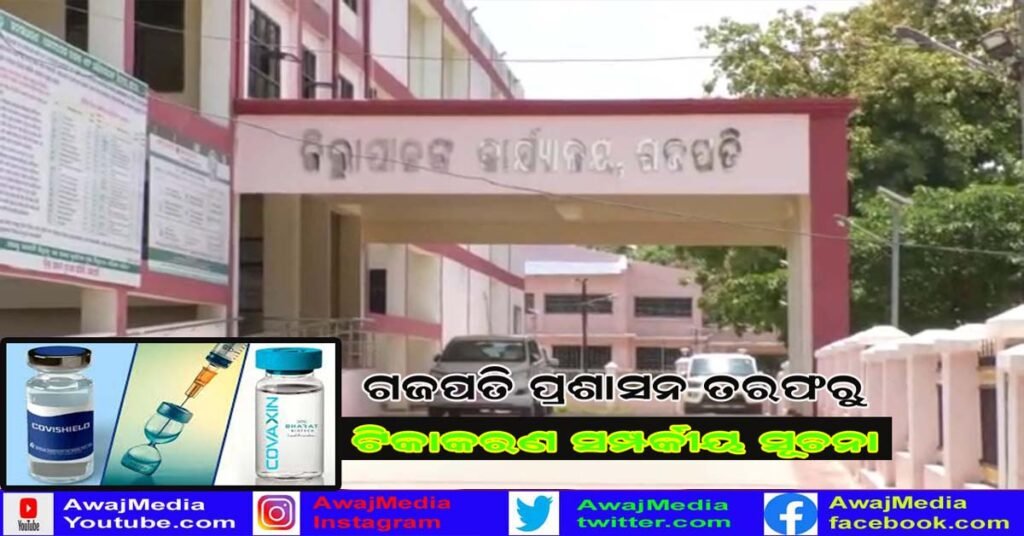 ଗଜପତି ( ଆୱାଜ ମିଡ଼ିଆ ) – ବିବେକାନନ୍ଦ ବେହେରା : ଗଜପତି ଜିଲ୍ଲାର ମୁଖ୍ୟ ଚିକିତ୍ସାଳୟ, ପଞ୍ଚାୟତ ସମିତି ଏବଂ ଗୋଷ୍ଠୀ ସ୍ୱାସ୍ଥ୍ୟ କେନ୍ଦ୍ର ସମୂହରେ ପଞ୍ଜୀକୃତ ଯୋଗ୍ୟ ବ୍ୟକ୍ତିଙ୍କୁ କୋଭିସିଲ୍ଡ ଟୀକା କରଣ ସମ୍ପର୍କରେ ଜିଲ୍ଲା ପ୍ରଶାସନ ତରଫରୁ ସୂଚନା ପ୍ରଦାନ କରାଯାଇଛି । 45 ବର୍ଷରୁ ଉର୍ଦ୍ଧ୍ୱ ବ୍ୟକ୍ତିଙ୍କୁ କୋଭିଡ଼ ଟୀକା ଦେବାର ବ୍ୟବସ୍ଥା ଅଛି । ପ୍ରଥମ ଡୋଜ ଦେବାର 84 ଦିନ ପରେ ଟୀକାକରଣ ଦ୍ୱିତୀୟ ଡୋଜ ଦେବାର ବ୍ୟବସ୍ଥା ଅଛି । ସରକାରଙ୍କ ନିଷ୍ପତ୍ତି ପ୍ରକାରେ ବିଭିନ୍ନ ବିଭାଗର କୋଭିଡ଼ ଯୋଦ୍ଧା ମାନଙ୍କ ପାଇଁ ଟୀକାକରଣର ବ୍ୟବସ୍ଥା ଥିବା ସମ୍ପର୍କରେ ସୂଚନା ଦିଆଯାଇଛି ।