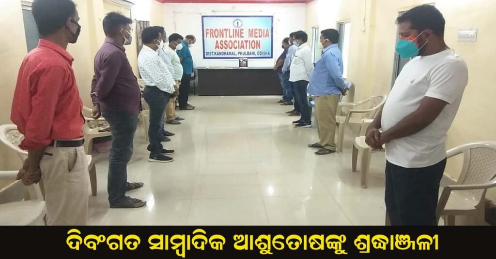 କନ୍ଧମାଳ ( ଆୱାଜ଼ ମିଡ଼ିଆ ) – ସଞ୍ଜୟ କୁମାର ପାଣିଗ୍ରାହୀ : ଦିବଂଗତ ସାମ୍ବାଦିକ କରୋନା ଯୋଦ୍ଧା ଆଶୁତୋଷ ବେହେରାଙ୍କ ସ୍ମୃତିରେ କନ୍ଧମାଳ ଜିଲ୍ଲା ଫ୍ରଣ୍ଟଲାଇନ ମିଡ଼ିଆ ଆସୋସିଏସନ ତରଫରୁ ଫୁଲବାଣୀ ସ୍ଥିତ ପ୍ରେସ କ୍ଲବ ଠାରେ କୋଭିଡ ଗାଇଡ଼ ଲାଇନ ଅନୁଯାୟୀ ଏକ ଶୋକସଭା ଅନୁଷ୍ଠିତ ହୋଇଯାଇଛି !