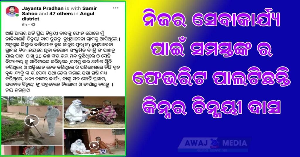 ଅନୁଗୁଳ ( ଆୱାଜ ମିଡ଼ିଆ ) – ବ୍ୟୁରୋ ରିପୋର୍ଟ : କରୋନା ନାଁ ଶୁଣି ଆତ୍ମୀୟ ସ୍ୱଜନ ବନ୍ଧୁ ବାନ୍ଧବ ଭୟରେ ଦୂରେଇ ଯାଉଥିବା ସମୟରେ , ନିର୍ବିକାର ଭାବରେ ନିଜେ ସତର୍କ ରହି କରୋନା ଆକ୍ରାନ୍ତଙ୍କ ସେବାକାର୍ଯ୍ୟ ଜାରି ରଖିଛନ୍ତି ସମାଜସେବୀ ଚିନ୍ମୟୀ ଦାସ . ଆଜି ପହିଲି ରଜ ରେ ନିଜେ PPE kit ପିନ୍ଧି କରୋନା ଆକ୍ରାନ୍ତ ମାନଙ୍କୁ ପରିଷ୍କାର ପରିଚ୍ଛନ୍ନ କରାଇବା ସହିତ ସମସ୍ତଙ୍କର ନଖ କାଟି ଦେହ ହାତ ରେ ତେଲ ମାଲିସ କରି ସେବା କରିଥିଲେ ଚିନ୍ମୟୀ . ପରେ ନିଜେ କରୋନା ଆଣ୍ଟିଜେନ ଟେଷ୍ଟ କରାଇ ନେଗେଟିଭ ରିପୋର୍ଟ ଆସିଲା ପରେ ଆଗାମୀ କାମ ପାଇଁ ହେଉଛନ୍ତି ପ୍ରସ୍ତୁତ . ସର୍ବଦା ମାସ୍କ ପିନ୍ଧିବା, ସାନିଟାଇଜର ବ୍ୟବହାର କରିବା ପାଇଁ ସ୍ଥାନୀୟ ଲୋକଙ୍କୁ ବାର୍ତ୍ତା ପ୍ରଦାନ ସହିତ ରୋଗୀଙ୍କୁ ଘୃଣା ନ କରି ରୋଗକୁ ଦୂରେଇବା ପାଇଁ ସତର୍କତା ପଦକ୍ଷେପ ନେବା ପାଇଁ ପରାମର୍ଶ ଦେଇଛନ୍ତି .