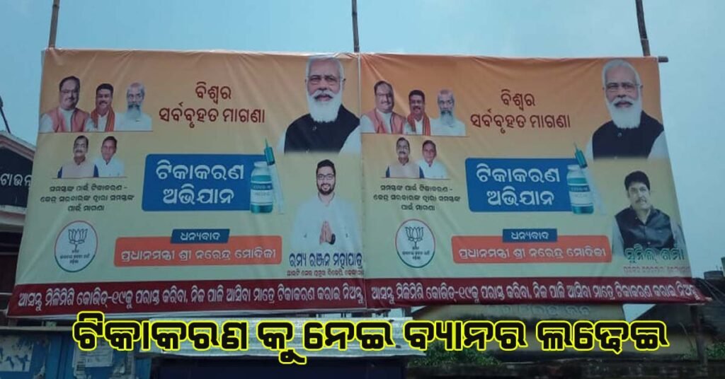 ଟୀକା କେନ୍ଦ୍ର ବାହାରେ ପ୍ରଧାନମନ୍ତ୍ରୀଙ୍କ ଫଟୋ ଲଗାଇଲେ ବିଜେପି ସମର୍ଥକ !!!