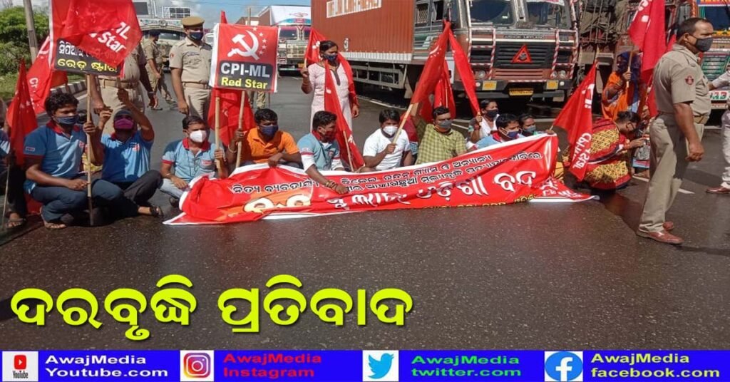 ଭୁବନେଶ୍ୱର ( ଆୱାଜ ମିଡ଼ିଆ ) – ବ୍ୟୁରୋ ରିପୋର୍ଟ : ପେଟ୍ରୋଲ, ଡିଜେଲ, ରନ୍ଧନ ଗ୍ୟାସ ଓ ଅନ୍ୟାନ୍ୟ ନିତ୍ୟ ବ୍ୟବହାର୍ଯ୍ୟ ସାମଗ୍ରୀର ଆକାଶଛୁଆଁ ମୂଲ୍ୟବୃଦ୍ଧି ପ୍ରତିବାଦରେ ବିପ୍ଳବୀ କମ୍ୟୁନିଷ୍ଟ ଦଳର “ଓଡିଶା ବନ୍ଦ” . ଆଜି ସିପିଆଇ ଏମ ଏଲ ରେଡ଼ ଷ୍ଟାର ଖୋର୍ଦ୍ଧା ଜିଲ୍ଲା କମିଟି ପକ୍ଷରୁ ରାଜ୍ୟ କାର୍ଯ୍ୟାଳୟ ଠାରୁ ଏକ ଶୋଭାଯାତ୍ରା ବାହାରି କ୍ରାଉନ ହୋଟେଲ ନିକଟ ଜାତୀୟ ରାଜପଥ କୁ ଦୀର୍ଘ ୨ ଘଣ୍ଟା ଧରି ଅବରୋଧ ସହିତ ସମସ୍ତ ଗାଡି ବନ୍ଦ କରାଯାଇଥିଲା ।