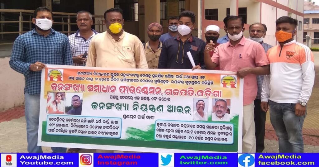 ଫାଉଣ୍ଡେସନର ଜିଲ୍ଲା ସଭାପତି ଶ୍ରୀ ପ୍ରଶାନ୍ତ କୁମାର ପାଳଙ୍କ ନେତୃତ୍ୱରେ ଫାଉଣ୍ଡେସନର କର୍ମକର୍ତ୍ତା ମାନେ ପାରଳାଖେମୁଣ୍ଡି ଠାରେ ଜିଲ୍ଲାପାଳଙ୍କ କାର୍ଯ୍ୟାଳୟ ପରିସରରୁ , ଜନସଂଖ୍ୟା ନିୟନ୍ତ୍ରଣ ଆଇନ ପ୍ରଣୟନ ଦାବୀରେ ବିଭିନ୍ନ ସ୍ଲୋଗାନ ମାନ ଦେଇ ଜିଲ୍ଲାପାଳଙ୍କ କାର୍ଯ୍ୟାଳୟ ଠାରେ ପହଞ୍ଚି ଜିଲ୍ଲାପାଳଙ୍କ ଅନୁପସ୍ଥିତିରେ ଉପଜିଲ୍ଲାପାଳଙ୍କୁ ପ୍ରଧାନମନ୍ତ୍ରୀଙ୍କ ଉଦ୍ଦେଶ୍ୟରେ ଦାବିପତ୍ର ଦେଇଥିଲେ। ଏ ସମ୍ପର୍କରେ ଅଧିକ ସୂଚନା ଦେଇ ଫାଉଣ୍ଡେସନର ଜିଲ୍ଲା ସଭାପତି ଶ୍ରୀ ପ୍ରଶାନ୍ତ କୁମାର ପାଳ ଏବଂ ଉପସଭାପତି ଶ୍ରୀ ଜଗନ୍ନାଥ ମହାପାତ୍ର କହିଛନ୍ତି ଯେ , ଉତ୍ତରପ୍ରଦେଶ ଓ ଆସାମ ରାଜ୍ୟରେ ଜନସଂଖ୍ୟା ବୃଦ୍ଧି ପାଉଥିବା ଦୃଷ୍ଟିରେ ରଖି ସେଠାରେ ଯେଭଳି ଜନସଂଖ୍ୟା ନିୟନ୍ତ୍ରଣ ଆଇନ କାର୍ଯ୍ୟକାରୀ ହେଲା , ସେହିଭଳି ଓଡ଼ିଶାରେ କରାଯାଉ ।