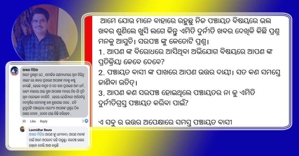 ସରପଞ୍ଚଙ୍କ କଳା କାରନାମା ଯୋଗୁଁ ” କୁସୁପଙ୍ଗି” ଗ୍ରାମର ନାଁ ବଦନାମ ହେଉଥିବାରୁ ସାମାଜିକ ଗଣମାଧ୍ୟମରେ କ୍ଷୋଭ