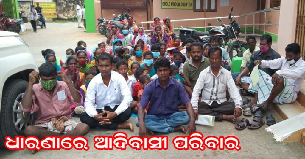 ଜଗତସିଂହପୁର ତହସିଲ ସମ୍ମୁଖରେ ଆଦିବାସୀ ଲୋକଙ୍କ ଧାରଣା ।