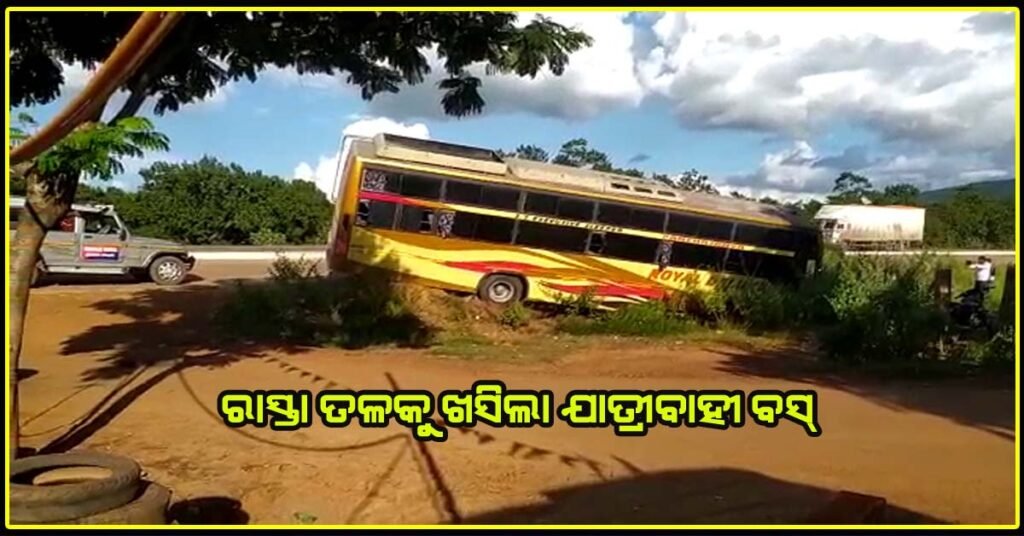 ଭାରସାମ୍ୟ ହରାଇ ରାସ୍ତା ତଳକୁ ଖସିଲା ଯାତ୍ରୀବାହୀ ବସ !!!