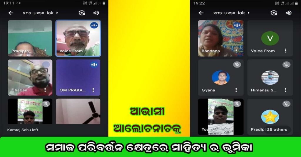 “ସମାଜ ପରିବର୍ତ୍ତନ କ୍ଷେତ୍ରରେ ସାହିତ୍ୟର ଭୂମିକା” ଶୀର୍ଷକ ରାଜ୍ୟ ସ୍ତରୀୟ ଭର୍ଚୁଆଲ ଆଲୋଚନା ଚକ୍ର ଆୟୋଜିତ !!!