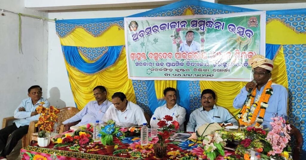 ବାଣପୁର ( ଆୱାଜ ମିଡ଼ିଆ ) – ରାକେଶ ସାହୁ : ଖୋର୍ଦ୍ଧା ଜିଲ୍ଲା ଚିଲିକା ବ୍ଲକ ଅନ୍ତର୍ଗତ ହରିକୁଣ୍ଡ ବରଡ଼ି ସରକାରୀ ଉଚ୍ଚ ପ୍ରାଥମିକ ବିଦ୍ୟାଳୟ ର ପ୍ରଧାନଶିକ୍ଷକ ବାସୁଦେବ ପାଇକରାୟ ଅବସର ଗ୍ରହଣ କରିଛନ୍ତି l ବାସୁଦେବ ପାଇକରାୟ ଥିଲେ ଛାତ୍ର ବତ୍ସଳ ଶିକ୍ଷକ , ଶିକ୍ଷକତାକୁ ପେଶା ଭାବରେ ନୁହଁ , ନିଶା ଭାବରେ ଗ୍ରହଣ କରିଥିଲେ ସେ l ଆଜି ବୃତ୍ତିଗତ ଜୀବନରୁ ସମ୍ପୂର୍ଣ ଭାବରେ ବିରାମ ନେଇଛନ୍ତି ଶ୍ରୀଯୁକ୍ତ ପାଇକରାୟ l