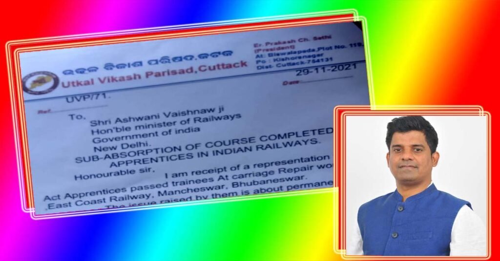 ଛାତ୍ରଛାତ୍ରୀ ମାନଙ୍କ ନିଯୁକ୍ତି ନେଇ କେନ୍ଦ୍ର ରେଳମନ୍ତ୍ରୀଙ୍କୁ ଚିଠି ଲେଖିଲେ ଉତ୍କଳ ବିକାଶ ପରିଷଦର ସଭାପତି ଇଂ. ପ୍ରକାଶ ଚନ୍ଦ୍ର ସେଠୀ ।