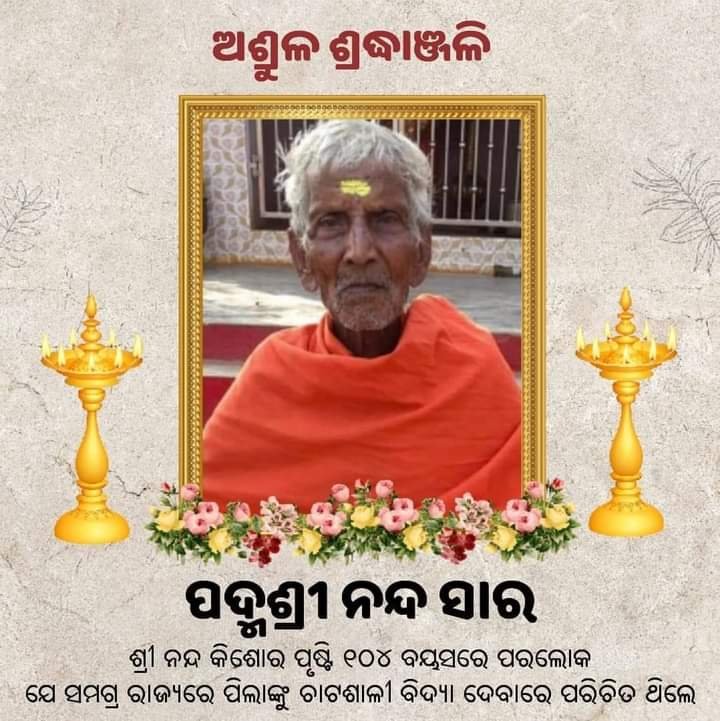 ଡମପଡା ( ଆୱାଜ ମିଡ଼ିଆ ) – ସୁବ୍ରତ କୁମାର ନାୟକ : ମାତ୍ର ମାସକ ତଳେ ରାଷ୍ଟ୍ରପତି ଙ୍କ ଠାରୁ ପଦ୍ମଶ୍ରୀ ପୁରସ୍କାର ପାଇଥିବା ଯାଜପୁର ଜିଲ୍ଲା କନ୍ତିରା ଗ୍ରାମର ଶତାୟୁ ଶିକ୍ଷକ ନନ୍ଦ କିଶୋର ପୃଷ୍ଟିଙ୍କର କରୋନା ସଂକ୍ରମଣରେ ପରଲୋକ ଘଟିବା ପରେ ସମଗ୍ର ରାଜ୍ୟରେ ଖେଳିଯାଇଛି ଶୋକର ଛାୟା । ଦିଲ୍ଲୀରୁ ପୁରସ୍କାର ଗ୍ରହଣ କରି ଆସିବାର କିଛିଦିନ ପରେ ତାଙ୍କୁ କରୋନା ହୋଇଥିଲା ।ଭୁବନେଶ୍ୱର ର ଏକ ବେସରକାରୀ ଚିକିତ୍ସାଳୟରେ ଚିକିତ୍ସିତ ହେଉଥିବା ବେଳେ ତାଙ୍କର ଦେହାନ୍ତ ହୋଇଥିଲା ।