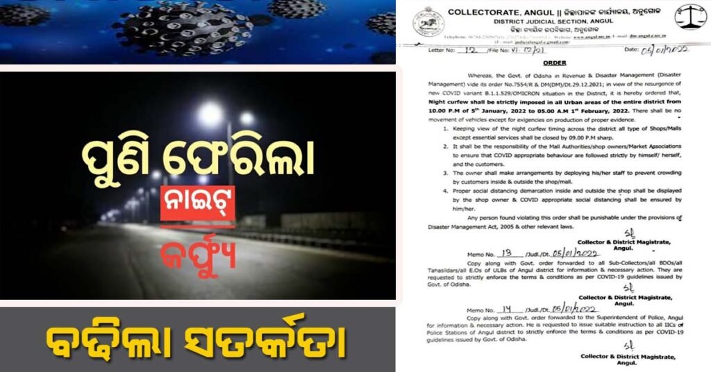 ଅନୁଗୁଳ ଜିଲ୍ଲା ରେ ରାତି ୧୦ ଟା ରୁ ସକାଳ ୫ ଟା ଲାଗିଲା ନାଇଟ୍ କର୍ଫ୍ୟୁ !!!