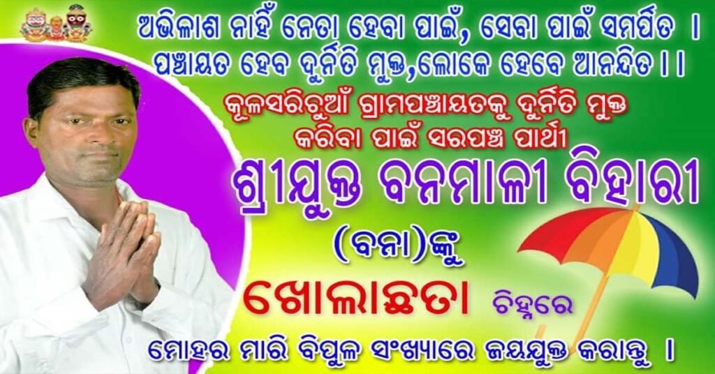 କୂଳସରିଚୁଆଁ ପଞ୍ଚାୟତ ଫାଇଟ : ମୈଦାନରେ ସମାଜସେବୀ ବନମାଳୀ ବିହାରୀ !!!