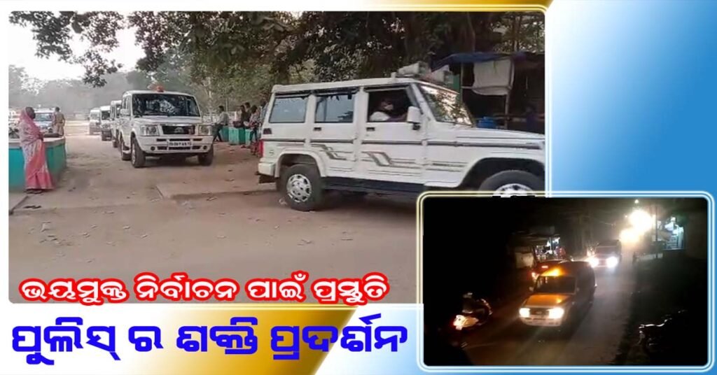 ବାଣପୁର ( ଆୱାଜ ମିଡ଼ିଆ ) – ରାକେଶ ସାହୁ : ଖୋର୍ଦ୍ଧା ଏସପିଙ୍କ ନିର୍ଦ୍ଦେଶ କ୍ରମେ ଖୋର୍ଦ୍ଧା ଜିଲ୍ଲା ପୋଲିସ ପକ୍ଷରୁ ଅତିରିକ୍ତ ଆରକ୍ଷୀ ଅଧିକ୍ଷକ ସୁରେଶ କୁମାର ଦାସଙ୍କ ତତ୍ୱାବଧାନରେ ଆଜି ସନ୍ଧ୍ୟାରେ ବାଣପୁର ଠାରେ କରାଯାଇଛି ପୋଲିସର ଶକ୍ତି ପ୍ରଦର୍ଶନ l ଆସନ୍ତା କାଲି ବାଣପୁରରେ ପଞ୍ଚାୟତ ନିର୍ବାଚନ ଥିବାରୁ ପୋଲିସ ପକ୍ଷରୁ ବାଣପୁର ବ୍ଲକର ସମସ୍ତ ପଞ୍ଚାୟତରେ କରାଯାଇଛି ଫ୍ଲାଗ ମାର୍ଚ୍ଚ l ଉକ୍ତ ଫ୍ଲାଗମାର୍ଚ୍ଚରେ ବାଣପୁର ତହସିଲଦାରଙ୍କ ସମେତ ବାଲୁଗାଁ ଏସଡିପିଓ , ୩ ଜଣ ଡ଼ିଏସପି , ଚାରି ଜଣ ଆଇଆଇସି ଏବଂ ୨୦ ଗୋଟି ମୋବାଇଲ ଭ୍ୟାନରେ ପୋଲିସ କର୍ମଚାରୀ ମାନେ ସାମିଲ ଥିଲେ l ଅତିରିକ୍ତ ଏସପି ଶ୍ରୀ ଦାସ ସ୍ଥାନୀୟ ପଲଟନ ପଡିଆରେ ପୋଲିସ ବ୍ରିଫିଙ୍ଗ କଲା ପରେ ଆରମ୍ଭ ହୋଇଥିଲା ଫ୍ଲାଗମାର୍ଚ୍ଚ l ପଞ୍ଚାୟତ ନିର୍ବାଚନ ପାଇଁ ଖୋର୍ଦ୍ଧା ଜିଲ୍ଲା ପୋଲିସ ପକ୍ଷରୁ ବ୍ୟାପକ ପ୍ରସ୍ତୁତି କରାଯାଇଥିବାର କହିଛନ୍ତି ଅତରିକ୍ତ ଏସପି ଶ୍ରୀ ଦାସ l ନିର୍ବାଚନକୁ ନିରପେକ୍ଷ, ଅବାଧ ଏବଂ ଶାନ୍ତିପୂର୍ଣ କରିବା ପାଇଁ ସଂକଳ୍ପବଦ୍ଧ ଖୋର୍ଦ୍ଧା ଜିଲ୍ଲା ପୋଲିସ ବୋଲି ଶ୍ରୀ ଦାସ କହିଛନ୍ତି l