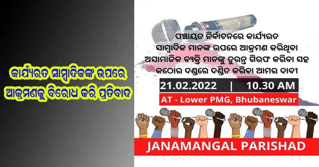 ନିର୍ବାଚନ ପରିପ୍ରେକ୍ଷୀରେ ସାମ୍ବାଦିକଙ୍କୁ ଆକ୍ରମଣ ଘଟଣା ବିରୋଧରେ ପ୍ରତିବାଦ !!!