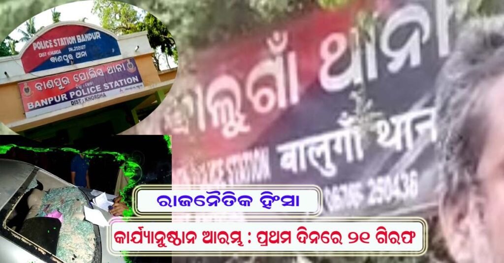 ଚିଲିକା ନିର୍ବାଚନ ମଣ୍ଡଳୀରେ ରାଜନୈତିକ ହିଂସା : ଆରମ୍ଭ ହେଲା କାର୍ଯ୍ୟାନୁଷ୍ଠାନ, ପ୍ରଥମ ଦିନରେ ୨୧ ଗିରଫ !!!