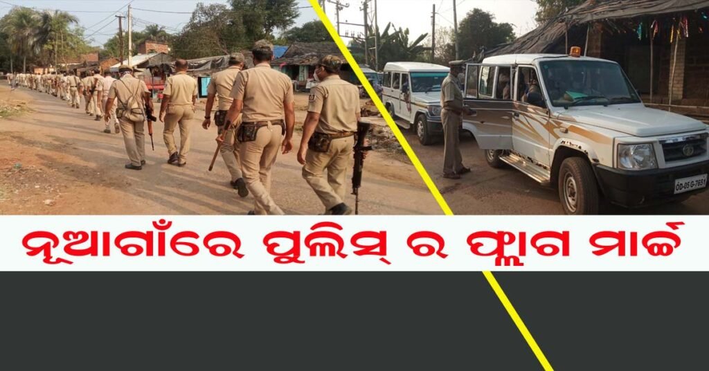 ଖଜୁରୀପଦା ନୂଆଗାଁ ରେ ପୁଲିସ ର ଫ୍ଲାଗ ମାର୍ଚ୍ଚ !!!