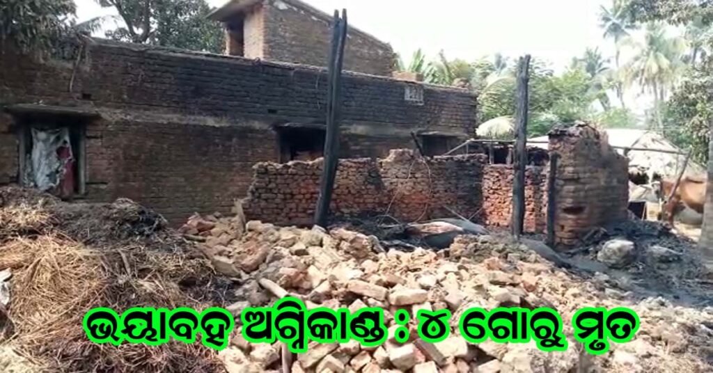 ଭୟାବହ ଅଗ୍ନିକାଣ୍ଡ : ୪ ଗୋରୁ ମୃତ , ୨ ଆହତ !!!
