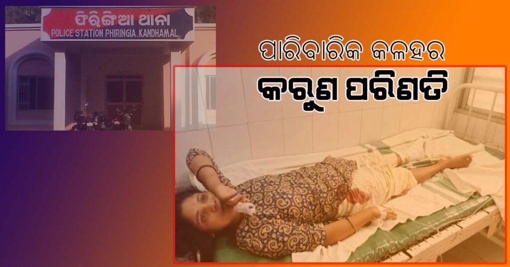 କନ୍ଧମାଳ ( ଆୱାଜ଼ ମିଡ଼ିଆ ) – ସଞ୍ଜୟ କୁମାର ପାଣିଗ୍ରାହୀ : ଅଗ୍ନୀକୁ ସାକ୍ଷୀ ରଖି ବିବାହ କରିଥଲେ l ଆଉ ସୁଖଦୁଃଖରେ ସାଥୀ ହୋଇ ରହିବାକୁ କଥା ଦେଇଥିଲେ ଉଭୟ ଉଭୟଙ୍କୁ l ହେଲେ କୌଣସି କାରଣରୁ ଉଭୟ ଙ୍କ ମଧ୍ୟରେ ପାଟିତୁଣ୍ଡ, ଯୁକ୍ତିତର୍କ ହୋଇଥିଲା l ଏଥିରେ ହଠାତ ଉତ୍ୟକ୍ତ ହୋଇ ନିଷ୍ଠୁର ସ୍ୱାମୀ ଟାଙ୍ଗିଆରେ ହାଣି ସ୍ତ୍ରୀ କୁ ହତ୍ୟା କରିବାକୁ ଉଦ୍ୟମ କରିଥିବା ଅଭିଯୋଗ ହୋଇଛି l ଏଭଳି ଏକ ଅଭାବନୀୟ ଘଟଣା କନ୍ଧମାଳ ଜିଲା ଫିରିଙ୍ଗିଆ ଥାନା କାଶିନୀପଦର ଗାଁରେ ଦେଖିବାକୁ ମିଳିଛି l ପ୍ରକାଶ ଯେ , ଶୁକ୍ରବାର ସକାଳେ ସ୍ୱାମୀ ମିଥୁନ ଡିଗାଲ ଓ ସ୍ତ୍ରୀ ହେମଲତା ମଧ୍ୟରେ କୌଣସି କାରଣରୁ ବଚସା ହୋଇଥିଲା । ଏହି ବଚସା ଧିରେ ଧିରେ ଉଗ୍ରରୂପ ଧାରଣ କରିଥିଲା । ଏଥିରେ ଉତକ୍ଷିପ୍ତ ହୋଇ ମିଥୁନ ଟାଙ୍ଗିଆରେ ହେମଲତାଙ୍କ ଶରୀରର ବିଭିନ୍ନ ସ୍ଥାନରେ ଚୋଟ ମାରି ଗୁରୁତର କ୍ଷତି କରିଥିଲା । ଫଳରେ ହେମଲତା ରକ୍ତ ଜୁଡୁବୁଡୁ ଅବସ୍ଥାରେ ଚିତ୍କାର କରିଥିଲେ l ପାଟି ଶୁଣି ସ୍ଥାନୀୟ ଲୋକେ ହେମଲତା ଙ୍କୁ ଉଦ୍ଧାର କରି ପ୍ରଥମେ ଫିରିଙ୍ଗିଆ ଡାକ୍ତରଖାନାରେ ଭର୍ତ୍ତି କରିଥିଲେ । ଅବସ୍ଥା ଗୁରୁତର ଥିବାରୁ ତାଙ୍କୁ ଫୁଲବାଣୀ ସଦର ମହକୁମା ଡାକ୍ତରଖାନାକୁ ସ୍ଥାନାନ୍ତର କରାଯାଇଛି l ଖବର ପାଇ ଫିରିଙ୍ଗିଆ ପୋଲିସ ଘଟଣାସ୍ଥଳରେ ପହଞ୍ଚି ତଦନ୍ତ ଅବ୍ୟାହତ ରଖିଛି l