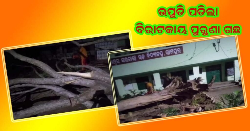 କାଳବୈଶାଖୀ ପବନରେ ଉପୁଡ଼ିଲା ଭୀମପୁର ଉଚ୍ଚ ମାଧ୍ୟମିକ ବିଦ୍ୟାଳୟ ପରିସରରେ ଥିବା ପୁରାତନ ବିରାଟକାୟ ଗଛ !!!
