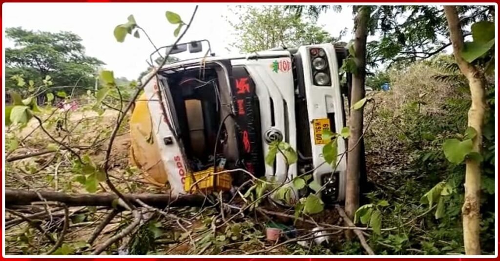 ଭାରସାମ୍ୟ ହରାଇ ରାସ୍ତା କଡ଼କୁ ଓଲଟିଲା ସିମେଣ୍ଟ ଟ୍ୟାଙ୍କର !!!