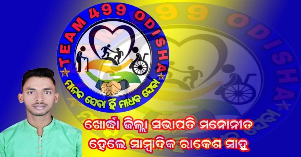 ଖୋର୍ଦ୍ଧା ( ଆୱାଜ ମିଡ଼ିଆ ) – ଯୋଗେଶ୍ୱର ପଣ୍ଡା : ସ୍ୱେଚ୍ଛାସେବୀ ସଂଗଠନ ଟିମ୍ ୪୯୯ ର ଖୋର୍ଦ୍ଧା ଜିଲ୍ଲା ସଭାପତି ଭାବେ ରାକେଶ ସାହୁ ମନୋନୀତ . ଅଗ୍ରଣୀ ସ୍ୱେଚ୍ଛାସେବୀ ସଂଗଠନ ଟିମ୍ ୪୯୯ ଓଡ଼ିଶା ପକ୍ଷରୁ ଖୋର୍ଦ୍ଧା ଜିଲ୍ଲା ବାଣପୁର ଅଞ୍ଚଳର ଜଣାଶୁଣା ସାମାଜିକ କର୍ମୀ ତଥା ଯୁବ ସାମ୍ବାଦିକ ରାକେଶ ସାହୁଙ୍କୁ ଖୋର୍ଦ୍ଧା ଜିଲ୍ଲା ସଭାପତି ଭାବରେ ମନୋନୀତ କରାଯାଇଛି .