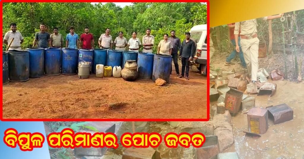 ଖୋର୍ଦ୍ଧା ( ଆୱାଜ ମିଡ଼ିଆ ) – ଯୋଗେଶ୍ୱର ପଣ୍ଡା : ଖୋର୍ଦ୍ଧା ଜିଲ୍ଲା ସଦର ଥାନା ଅନ୍ତର୍ଗତ କୁଞ୍ଜୁରୀ ପଞ୍ଚାୟତ ବରପଦା ଗ୍ରାମର ଦେଶୀ ମଦ ପ୍ରସ୍ତୁତ କରୁଥିବାର ଖବର ପାଇ ଅବକାରୀ ବିଭାଗ ଅତର୍କିତ ଭାବରେ ଚଢ଼ାଉ କରିଥିଲେ । ଘଟଣା ସ୍ଥଳରୁ ୭୨୦୦ ଲିଟର ପୋଚ ଓ ୩୪୦ ଲିଟର ଦେଶୀ ମଦ ଜବତ କରିବା ସହ ବ୍ୟବହୃତ ସାମଗ୍ରୀ ଗୁଡିକୁ ନଷ୍ଟ କରାଯାଇଛି । ଏଥିରେ ଖୋର୍ଦ୍ଧା ଜିଲ୍ଲା ଅବକାରୀ ବିଭାଗ ଇନିସପେକ୍ଟର ଭୈରବ ସାହୁ, ଭ୍ରାମ୍ୟମାଣ ଇନିସପେକ୍ଟର ସସ୍ମିତା ହୋତା, ଖୋର୍ଦ୍ଧା ଓଆଇସି ବି ମନୋଜ କୁମାର, ଜଟଣୀ ଓଆଇସି ଗୀତାଞ୍ଜଳି ବେହେରା ଓ ବେଗୁନିଆ ଓଆଇସି ବିରଞ୍ଚି ନାରାୟଣ ମହାନ୍ତି ପ୍ରମୁଖ ସାମିଲ ଥିଲେ ।