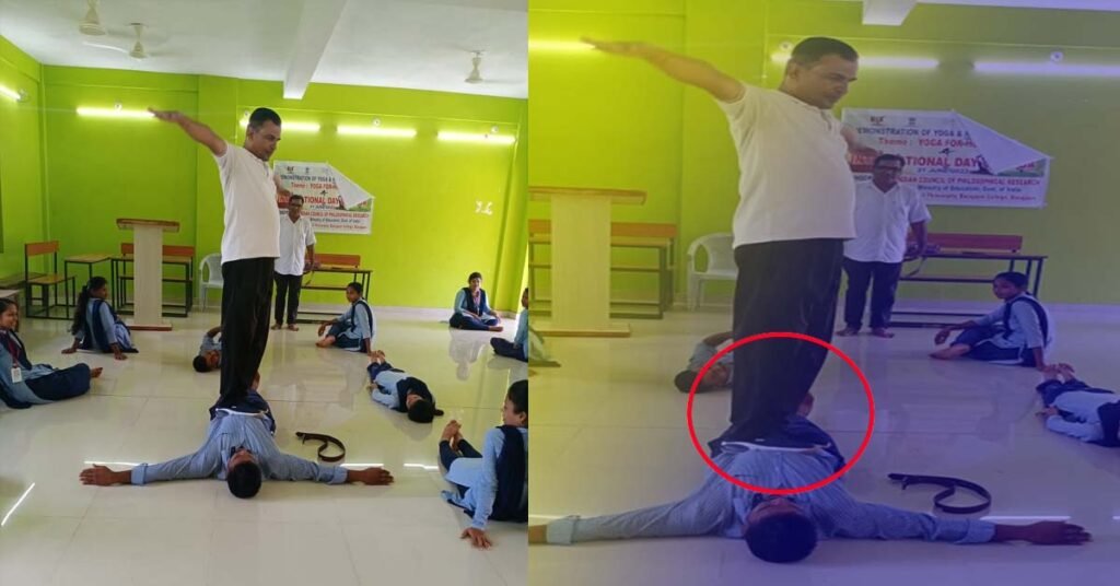 ବାଣପୁର ( ଆୱାଜ ମିଡ଼ିଆ ) – ରାକେଶ ସାହୁ : ପିଲା ଠୁ ବୃଦ୍ଧ, ଗାଁରୁ ଆରମ୍ଭ କରି ଦେଶ ବିଦେଶରେ ଜୁନ ମାସ ୨୧ ତାରିଖ ଦିନ ଯୋଗ ପାଇଁ ଦିନଟିଏ ବୋଲି ସମସ୍ତେ ମାନନ୍ତି। ଯୋଗ କରିବା ଦ୍ଵାରା ସ୍ଵାସ୍ଥ୍ୟ ନିରୋଗ ରହିବ ଏବଂ ଆଜି କାଲି ଯେଉଁ ଭଳି ମେଦ ବହୁଳ , ମଧୁମେହ ଓ ଉଚ୍ଚ ରକ୍ତଚାପ ଭଳି ରୋଗର ଶିକାର ହୋଇ ପ୍ରାଣହାନୀ ହେଉଛି ସେମିତି ଦେଖିବାକୁ ଗଲେ ଯଥା ସମ୍ଭବ ପୃଥିବୀରୁ ମଣିଷ ସମାଜ ଲୋପ ପାଇଯିବ । ଏହି ପରିପ୍ରେକ୍ଷୀରେ ବାଲୁଗାଁ କଲେଜରେ ଯୋଗ ଶିକ୍ଷା ପ୍ରଦାନ କରା ଯାଇଛି ଛାତ୍ରଛାତ୍ରୀ ମାନଙ୍କୁ । ଯୋଗ ଦିବସ ଅବସରରେ ଯୋଗଗୁରୁ ଅଭିନବ ଢଙ୍ଗରେ ଯୋଗ ଶିକ୍ଷା ଦେଖି ଆଖପାଖ ଅଞ୍ଚଳରେ ଯୋଗ ଶିକ୍ଷାର୍ଥୀ ସ୍ତବ୍ଧ ହୋଇଛନ୍ତି । ଯୋଗ ଗୁରୁ ଅକ୍ଷୟ ମିଶ୍ର ଜୋତା ପିନ୍ଧି ଜଣେ ଛାତ୍ରଙ୍କ ପେଟ ଉପରେ ଚଢି ଯୋଗ ଶିଖାଉଥିବାର ଫଟୋ ଏବେ ସୋସିଆଲ୍ ମିଡିଆରେ ବେସ୍ ଭାଇରାଲ୍ ହବାରେ ଲାଗିଛି । ମୋବାଇଲକୁ ମୋବାଇଲ ମାଧ୍ୟମରେ ଘୁରି ବୁଲୁଚି ଯୋଗଗୁରୁଙ୍କ ଯୋଗଶିକ୍ଷା ପ୍ରଦାନର ଦୃଶ୍ୟ । ଏମିତି ଅଭୁତ ଯୋଗ ଶିକ୍ଷା ଦେଖି ବିଭିନ୍ନ ମହଲରେ ଘୋର ନିନ୍ଦା କରାଯାଇଛି ।