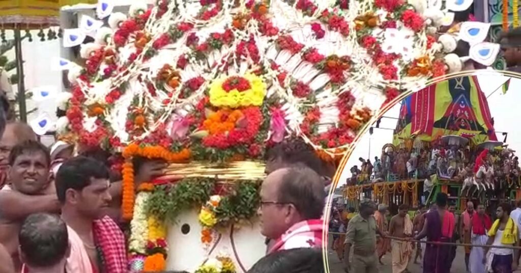 କେନ୍ଦ୍ରାପଡା ( ଆୱାଜ ମିଡ଼ିଆ ) – ପ୍ରଫୁଲ୍ଲ କୁମାର ମଲ୍ଲ : ଶେଷ ହୋଇଛି ମହାପ୍ରଭୁ ବଳଦେବଜୀଉଙ୍କ ଘୋଷଯାତ୍ରାର ପ୍ରଥମ ଦିନ । ପରମ୍ପରା ଅନୁଯାୟୀ, ପ୍ରଥମ ଦିନରେ ମହାପ୍ରଭୁ ବିରାଜିତ ବ୍ରହ୍ମ ତାଳଧ୍ଵଜ ରଥ ପାହୁଲେ ଆଗକୁ ଯାଇ ଦେବୋତ୍ତର ବିଭାଗ କାର୍ଯ୍ୟାଳୟ ସମୁଖରେ ଅଟକିଛି । ଧାଡି ପହଣ୍ଡିରେ ବ୍ରହ୍ମ ତାଳଧ୍ଵଜ ରଥକୁ ବିଜେ କଲେ ମଣି ବିଗ୍ରହ ପ୍ରତିମା ମହାପ୍ରଭୁ ବଳଦେବଜୀଉ, ଭଗିନୀ ସୁଭଦ୍ରା, ଜଗତର ନାଥ ଜଗନ୍ନାଥ ଏବଂ ଶ୍ରୀ ସୁଦର୍ଶନ । ହଟିଆ ଠାକୁର ସାଙ୍ଗରେ ଭାଇ ଭଉଣୀକୁ ନେଇ ରତନ ବେଦୀରୁ ଓହ୍ଲାଇ ଜନ୍ମବେଦୀକୁ ନଅ ଦିନ ଧରି ଯାଉଥିବା ବେଳେ ଆଜି ଶ୍ରୀକ୍ଷେତ୍ରରେ ରଥ ଟଣା ଶେଷ ହୋଇଛି । କିନ୍ତୁ, ପରମ୍ପରା ଅନୁଯାୟୀ ବଡଭାଇ ତୁଳସୀ କ୍ଷେତ୍ରାଧିପତି ବଳଦେବଜୀଉଙ୍କ ବ୍ରହ୍ମ ତାଳଧ୍ଵଜ ରଥକୁ ବାଟରେ ଅଟକି ରହିବାକୁ ପଡିଛି l କଥା  ରହିଛି ଯେ, ପୁରୀରେ ରଥ ଟଣା ସରିବା ପରେ ତୁଳସୀ କ୍ଷେତ୍ରରେ ବ୍ରହ୍ମ ତାଳଧ୍ଵଜ ରଥକୁ ଟାଣିବା ପାଇଁ ଗଜପତି ପହଞ୍ଚିଥାନ୍ତି । ଅନ୍ୟ ଏକ ବିଶ୍ୱାସ ଅନୁଯାୟୀ, ଶ୍ରୀକ୍ଷେତ୍ର ପୁରୀରେ ରଥ ଟାଣିବା ପରେ କେନ୍ଦ୍ରାପଡ଼ା ଇଚ୍ଛାପୁରର ବଳଦେବଜୀଉଙ୍କ ବ୍ରହ୍ମ ତାଳଧ୍ଵଜ ରଥ ଟାଣିଲେ କୋଟି ପୁଣ୍ୟ ଫଳ ମିଳିଥାଏ, ଯେଉଁଥି ପାଇଁ ଏଠାରେ ଶ୍ରୀଗୁଣ୍ଡିଚା ଦୁଇଦିନ ପାଳିତ ହୋଇଥାଏ । ଗତ ଦୁଇବର୍ଷ ଧରି କୋଭିଡ କାରଣରୁ ଭକ୍ତ ବିହୀନ ମନ୍ଦିର ଭିତରେ ଘୋଷଯାତ୍ରା ହେଉଥିବା ବେଳେ ଚଳିତ ବର୍ଷ ଭରପୁର ଭକ୍ତଙ୍କ ଗହଳିରେ ପ୍ରଥମ ଦିନର ଯାତ୍ରା ଶେଷ ହୋଇଛି । ପରମ୍ପରା ଅନୁଯାୟୀ, ବ୍ରହ୍ମ ତାଳଧ୍ଵଜ ରଥର ଉଚ୍ଚତା ୬୩ ଫୁଟ ହୋଇଥିବା ବେଳେ ଏହାର ଚକ ସଂଖ୍ୟା ୧୪ । ୧୪ ବ୍ରହ୍ମାଣ୍ଡର ରାଜା ମହାପ୍ରଭୁ ବଳଦେବଜୀଉ ହୋଇଥିବାରୁ ଏହି ବ୍ରହ୍ମ ତାଳଧ୍ଵଜ ରଥର ଚକ ସଂଖ୍ୟା ୧୪ । ଚଳିତ ବର୍ଷ ରଥଯାତ୍ରା ପାଇଁ ବ୍ୟାପକ ପୋଲିସ ଫୋର୍ସ ମୂତୟନ କରାଯାଇଥିବା ବେଳେ ନିଜେ ଏସପି ଶାନ୍ତିଶୃଙ୍ଖଳା ପାଇଁ ଦାୟିତ୍ୱ ବହନ କରୁଛନ୍ତି । ଏଥିସହ ୫ ଜଣ ତହସିଲଦାର ଏକଜିକ୍ୟୁଟିଭ ମାଜିଷ୍ଟ୍ରେଟ ଦାୟିତ୍ୱରେ ରହିଥିବା ବେଳେ ଜିଲ୍ଲାପାଳ, ଦୁଇ ଅତିରିକ୍ତ ଜିଲ୍ଲାପାଳ ଏବଂ ଉପଜିଲ୍ଲାପାଳ ତଥା ଟ୍ରଷ୍ଟ ବୋର୍ଡର ସଭାପତି ରଥଯାତ୍ରାକୁ ଶୃଙ୍ଖଳିତ କରିବା ପାଇଁ ଚେଷ୍ଟିତ ଅଛନ୍ତି । ଆଜି ସକାଳୁ ଜୟ ମଙ୍ଗଳା ଆଳତି ପରେ ସମସ୍ତ ଧୂପ ଓ ଖେଚୁଡ଼ି ଭୋଗ ପରେ ଅପରାହ୍ନରେ ଚତୁର୍ଦ୍ଧାମୂର୍ତ୍ତିଙ୍କୁ ଧାଡି ପହଣ୍ଡିରେ ଅଣାଯାଇ ଭକ୍ତଙ୍କୁ ଦର୍ଶନ ଦେଇଥିଲେ ବଳିଆର ଭୂଜ ବଳଦେବଜୀଉ ।