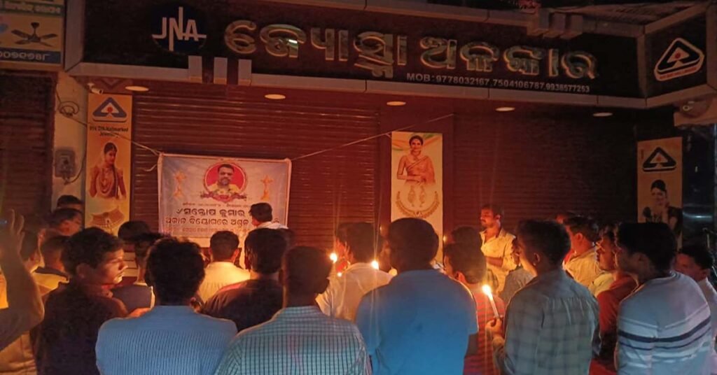 ବାଙ୍କୀ ( ଆୱାଜ ମିଡ଼ିଆ ) – ଅନନ୍ତ ରଣା : ବାଙ୍କୀର ବ୍ୟବସାୟୀକ ପ୍ରତିଷ୍ଠାନ ଜୌତ୍ସ୍ନା ଅଳଙ୍କାର ର ପ୍ରତିଷ୍ଠାତା ସନ୍ତୋଷ କୁମାର ସାହୁ ଙ୍କ ଦେହାନ୍ତରେ ସମଗ୍ର ଅଳଙ୍କାର ବ୍ୟବସାୟୀଙ୍କ ଭିତରେ ଖେଳି ଯାଇଛି ଶୋକର ଛାୟା । ଏହି ପରିପ୍ରେକ୍ଷୀରେ ବାଙ୍କୀ ଜଗନ୍ନାଥ ବଜାର ବ୍ୟବସାୟ ସଂଘ ପକ୍ଷରୁ ବାଙ୍କୀ ବଜାରରେ ଥିବା ସମସ୍ତ ବଣିକ ମାନେ ଏକତ୍ରିତ ହୋଇ ତାଙ୍କର କମାରଶାଳ ଗଳି ରେ ଥିବା ଦୋକାନ ସମୁଖରେ କ୍ୟାଣ୍ଡେଲ ଜାଳି ଅମର ଆତ୍ମାର ସଦଗତି ନିମନ୍ତେ ନିରବ ପ୍ରାର୍ଥନା କରିଛନ୍ତି । ଏହି କାର୍ଯ୍ୟକ୍ରମକୁ ସଂଘର ସଭାପତି ପ୍ରଭାତ ସାହୁ ଙ୍କ ତତ୍ତ୍ୱାବଧାନରେ ସମ୍ପାଦକ ତୁଷାର କାନ୍ତ ବୈଠାରୁ ସୂଚାରୁ ରୂପେ ପାଳନ କରିବା ସହ ତାଙ୍କ ପରିବାର ଲୋକଙ୍କୁ ଆଗାମୀ ଦିନରେ ସଂଘ ପକ୍ଷରୁ ସମସ୍ତ ସହଯୋଗ ଦିଆଯିବା ପାଇଁ ପ୍ରତିଶୃତି ଦେଇଥିଲେ । ଉକ୍ତ ଶ୍ରଦ୍ଧାଞ୍ଜଳୀ ସଭାରେ ସ୍ଥାନୀୟ ଅଧିବାସୀ ତଥା ସମାଜସେବୀ କ୍ଷେତ୍ରବାସୀ ଦାଶ ଉପସ୍ଥିତ ରହି ତାଙ୍କ ଆତ୍ମାର ସଦଗତି କାମନା କରିଥିଲେ ।