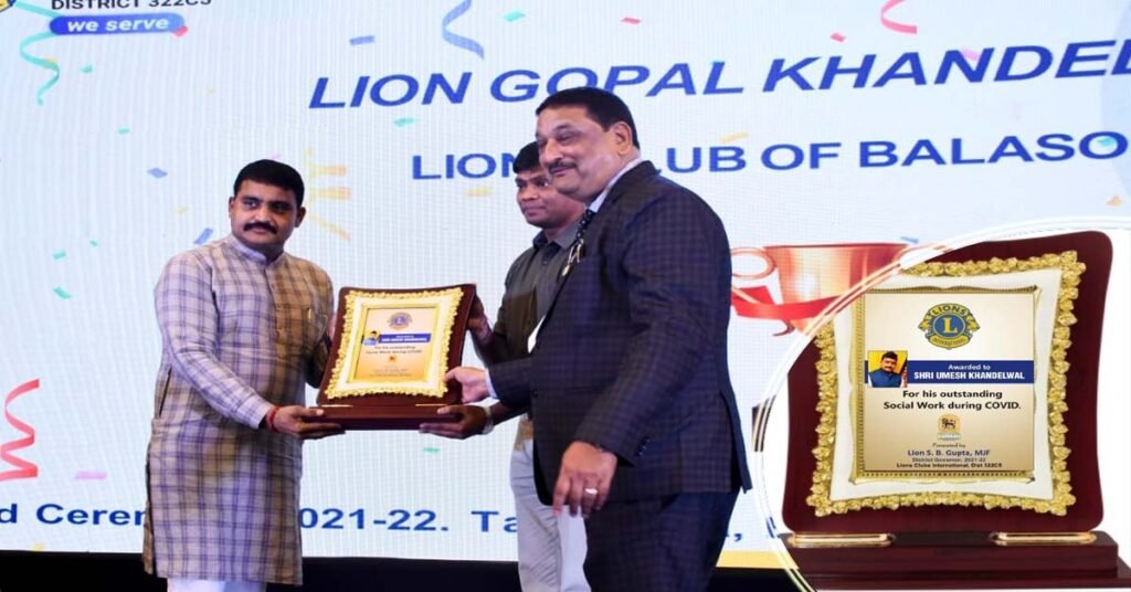 ଭୁବନେଶ୍ୱର ( ଆୱାଜ ମିଡ଼ିଆ ) – ବ୍ୟୁରୋ ରିପୋର୍ଟ : ଲାୟନ୍ସ କ୍ଲବ ଇଣ୍ଟରନାସନାଲ ଜ଼ିଲ୍ଲା 322 ସି. ଏସ ତରଫରୁ ଭୁବନେଶ୍ୱର ତାଜ ବିବାନ୍ତ ଠାରେ ଜ଼ିଲ୍ଲା ବାର୍ଷିକ ପୁରସ୍କାର ବିତରଣ ଉତ୍ସବ ଅନୁଷ୍ଠିତ ହୋଇଥିଲା | ଏହି ପୁରସ୍କାର ବିତରଣ ଅବସରରେ ସମାଜସେବୀ ଉମେଶ ଖଣ୍ଡେଲୱାଲଙ୍କୁ କରୋନା କାଳରେ କରିଥିବା ଅଭୁତ୍ତ୍ୱ ପୂର୍ଵ ସେବା ପାଇଁ କରୋନା ଯୋଦ୍ଧା ସମ୍ମାନରେ ସମ୍ମାନୀତ କରାଯାଇଛି | ଶ୍ରୀ ଖଣ୍ଡେଲୱାଲ ଙ୍କ ନେତୃତ୍ୱରେ କରୋନା ମହାମାରୀ କାଳରେ ଏକ ଲକ୍ଷ କୋଡିଏ ହଜାର ଲୋକଙ୍କୁ ରନ୍ଧା ଖାଦ୍ୟ ଏବଂ ଶୁଖିଲା ଖାଦ୍ୟ ପୁଡିଆ ବିତରଣ ସହ ଅକ୍ସିଜେନ ସିଲିଣ୍ଡର , ଅକ୍ସିଜେନ କନେକଟର ମେସିନ , ଔଷଧ ଏବଂ ଆମ୍ବୁଲାନ୍ସ ଯୋଗାଇ ଦିଆଯାଇଥିଲା | ଶ୍ରୀ ଖଣ୍ଡେଲୱାଲଙ୍କ ନିରନ୍ତର ସମାଜ ସେବା ଆଜି କୁ ପଚିଶ ବର୍ଷ ପୂର୍ବରୁ ଚାଲୁ ରହିଛି | ସ୍ୱର୍ଗରଥ ସେବା ନିରନ୍ତର ଚାଲୁ ରହିଛି | ଏହି ସମ୍ବର୍ଦ୍ଧନା ସଭାରେ ଭୁବନେଶ୍ୱର ସାଂସଦ ଶ୍ରୀମତୀ ଅପରାଜିତା ଷଢଙ୍ଗୀ ମୁଖ୍ୟ ଅତିଥି ଭାବରେ, ଖୋର୍ଦ୍ଧା ଜ଼ିଲ୍ଲାପାଳ କେ. ସୁଦର୍ଶନ ଚକ୍ରବର୍ତ୍ତୀ ଏବଂ ଲାୟନ୍ସ କ୍ଲବର ପୂର୍ବତନ ଗଭର୍ଣ୍ଣର ଭଗବାନ ଗୁପ୍ତାଙ୍କ ସହିତ ଅନେକ ମାନ୍ୟଗଣ୍ୟ ବ୍ୟକ୍ତି ଉପସ୍ଥିତ ଥିଲେ |