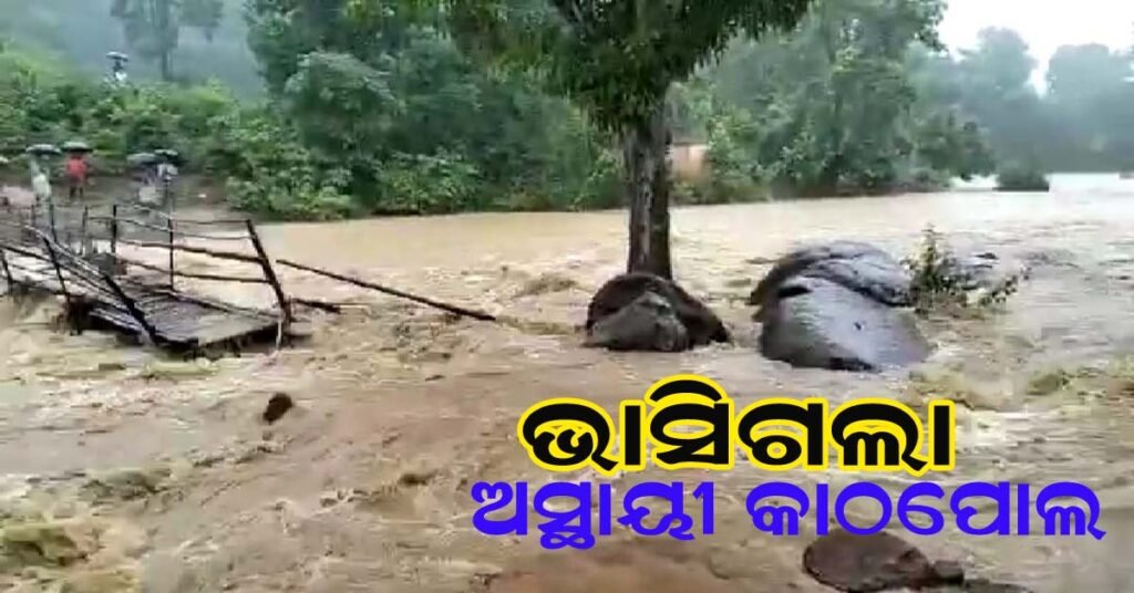ଲଘୁଚାପ ଜନିତ ବର୍ଷା : ଭାସିଗଲା କାଲି ପେନୁ ନଦୀ ଉପରେ ଥିବା ଅସ୍ଥାୟୀ କାଠ ପୋଲ !!!